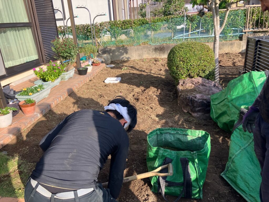 木の撤去が完了したら、次は人工芝の下地づくり。