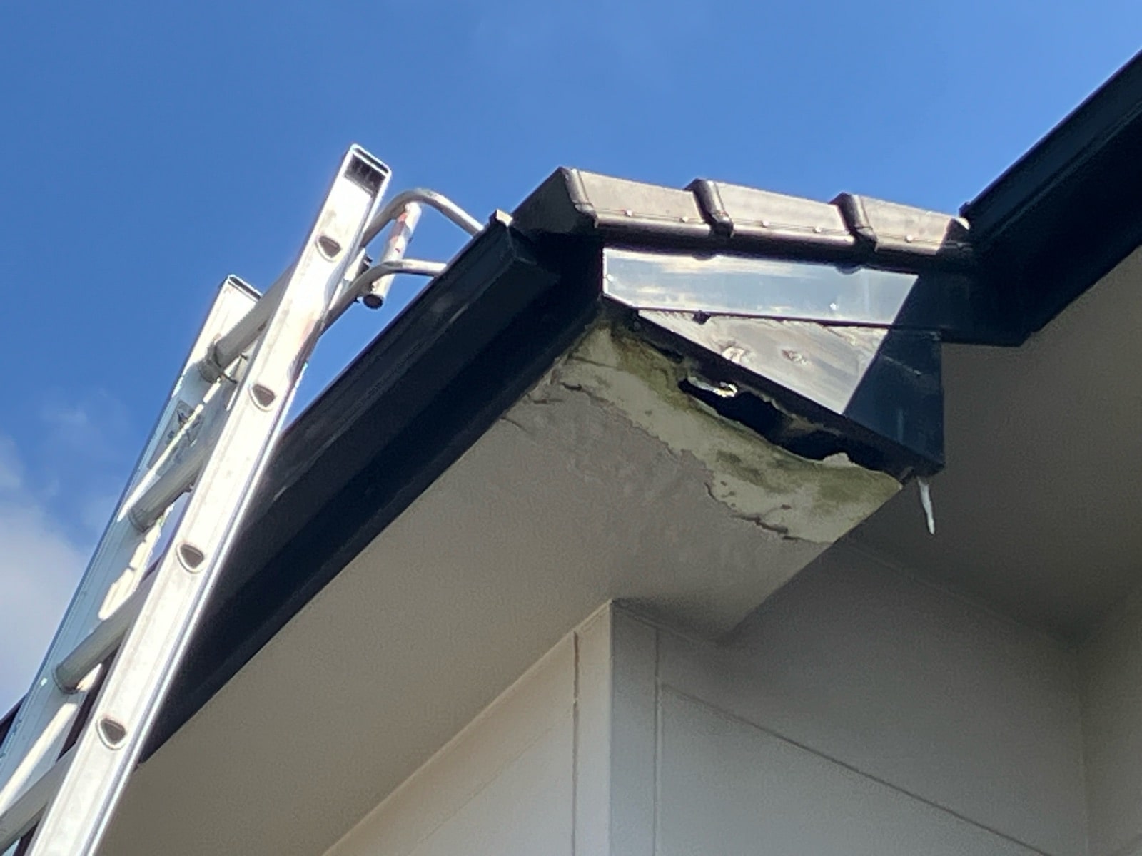 屋根を見て見ると、谷樋にゴミがあり、雨水が谷樋に流れず、内部に雨水が入り込んだ感じです。
