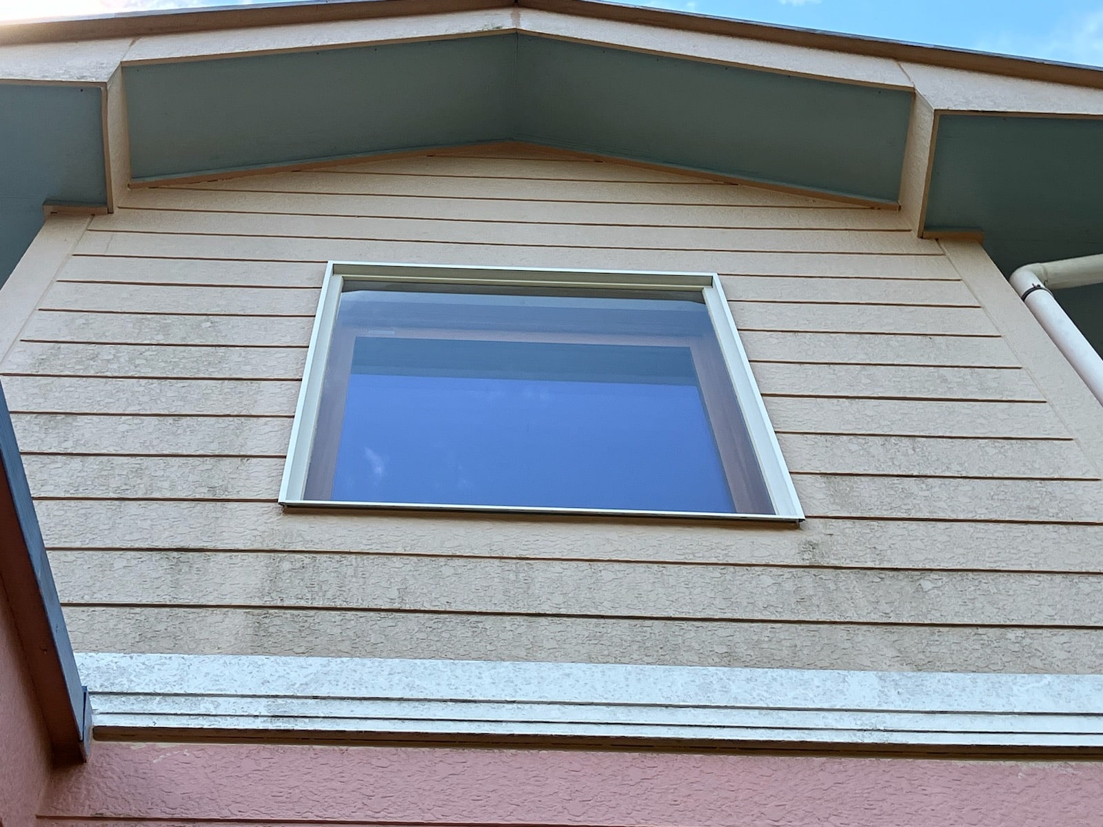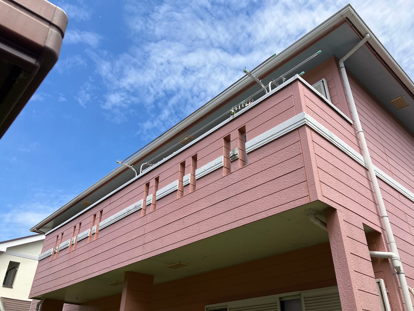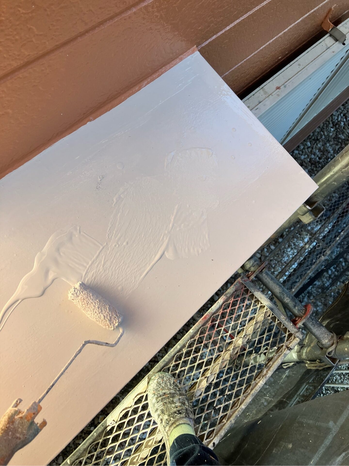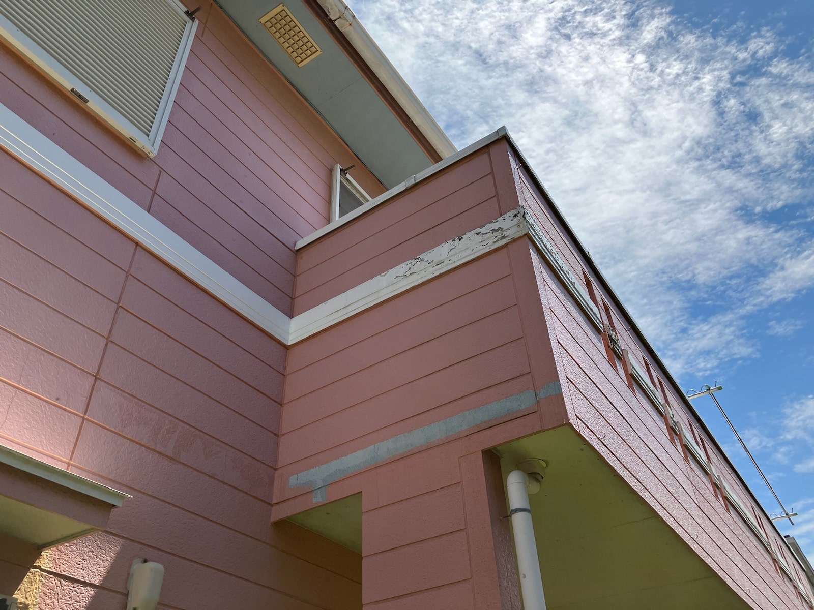 幕板の部分に塗膜剥離がみられます。ベランダ周りの帯は撤去予定です。