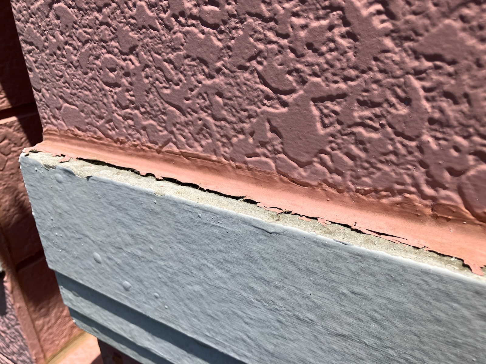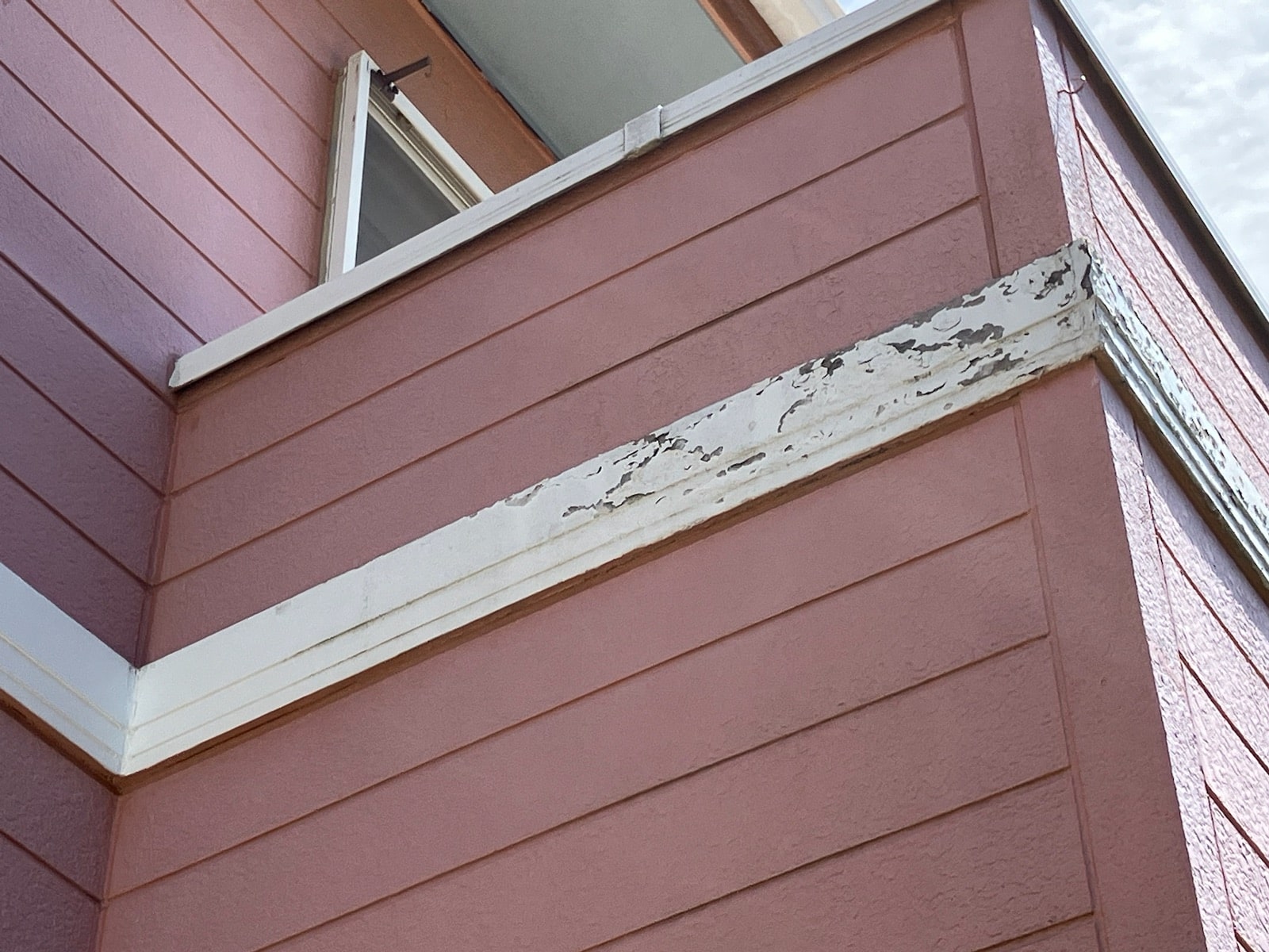 幕板の上部の塗膜が剥がれています。帯は天端部分からの吸水により劣化しやすい箇所でもあります。