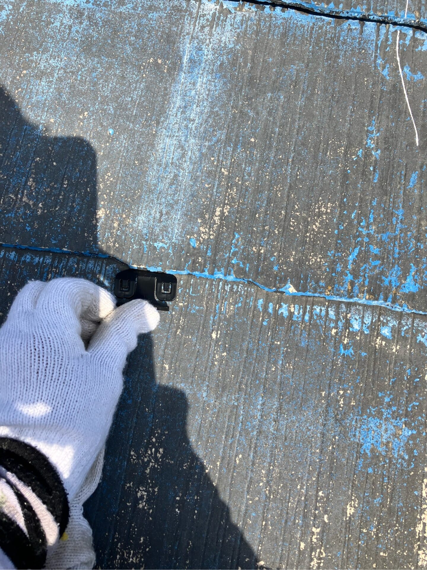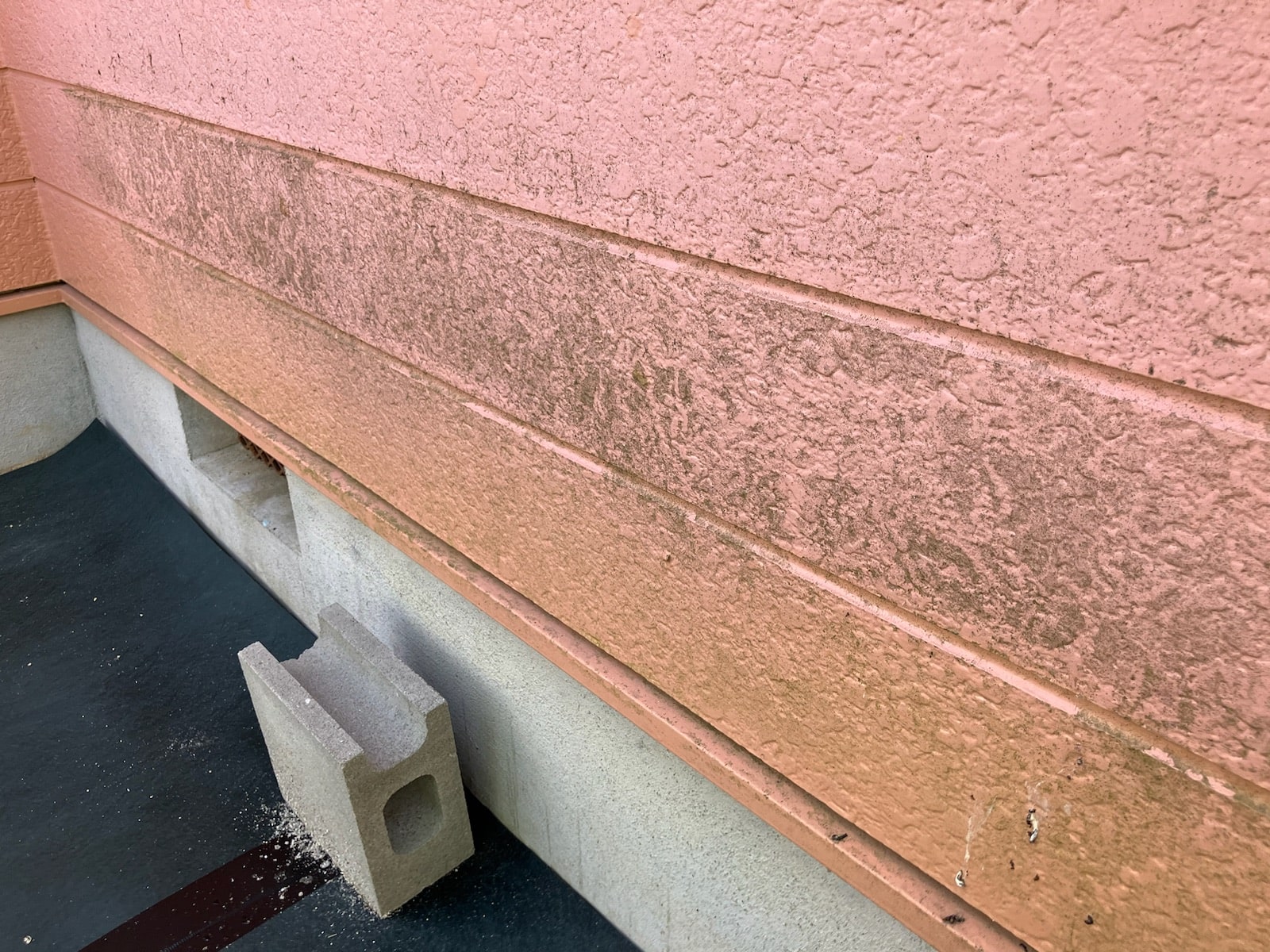 塗膜表面に重度のチョーキング現象が発生している状態です。防水機能が完全に失われている状態なので、早期の塗装メンテナンスが必要です。