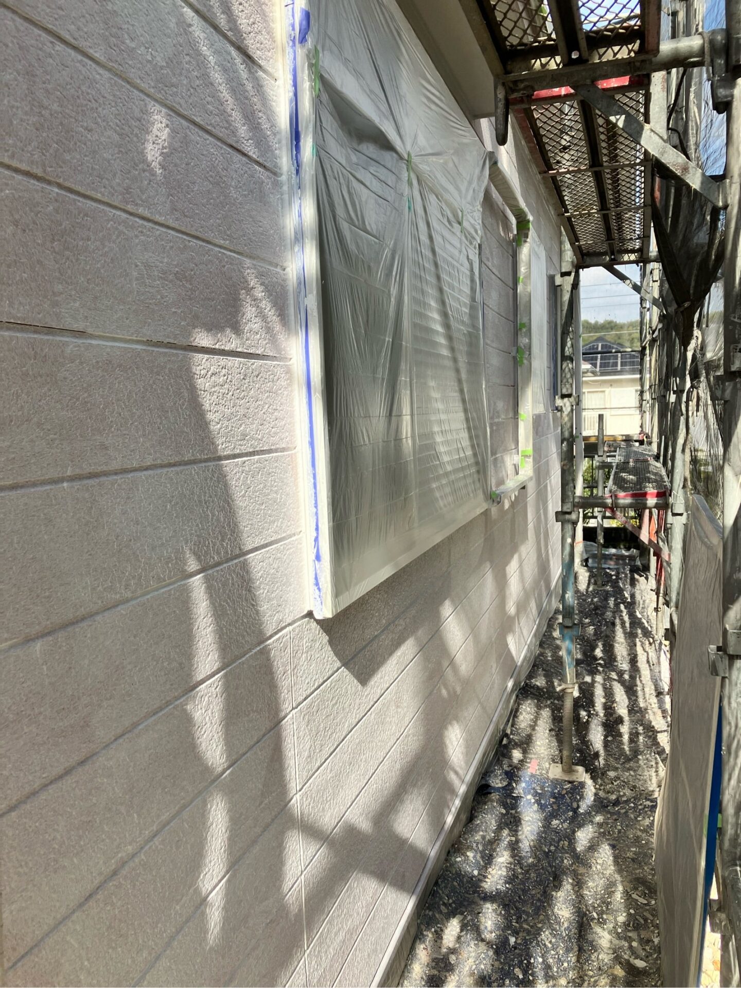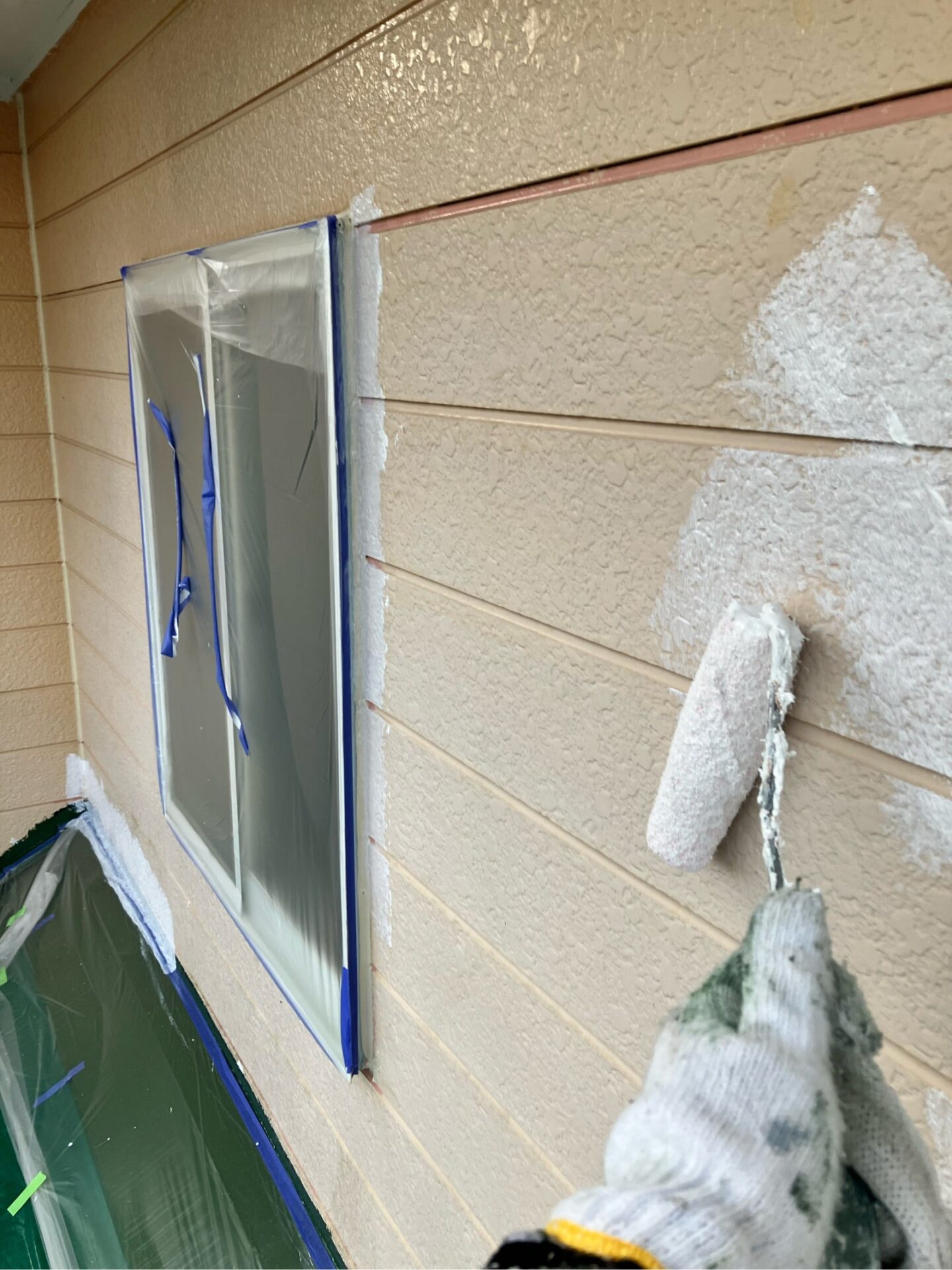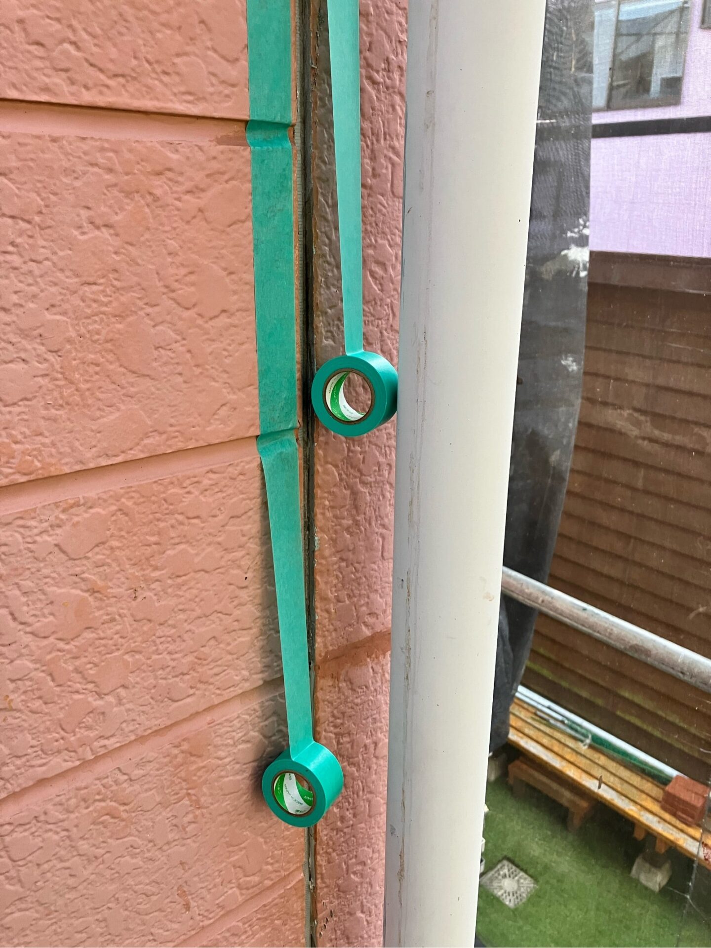 目地の打ち替えです。劣化した目地を撤去し、養生テープを貼っていきます。