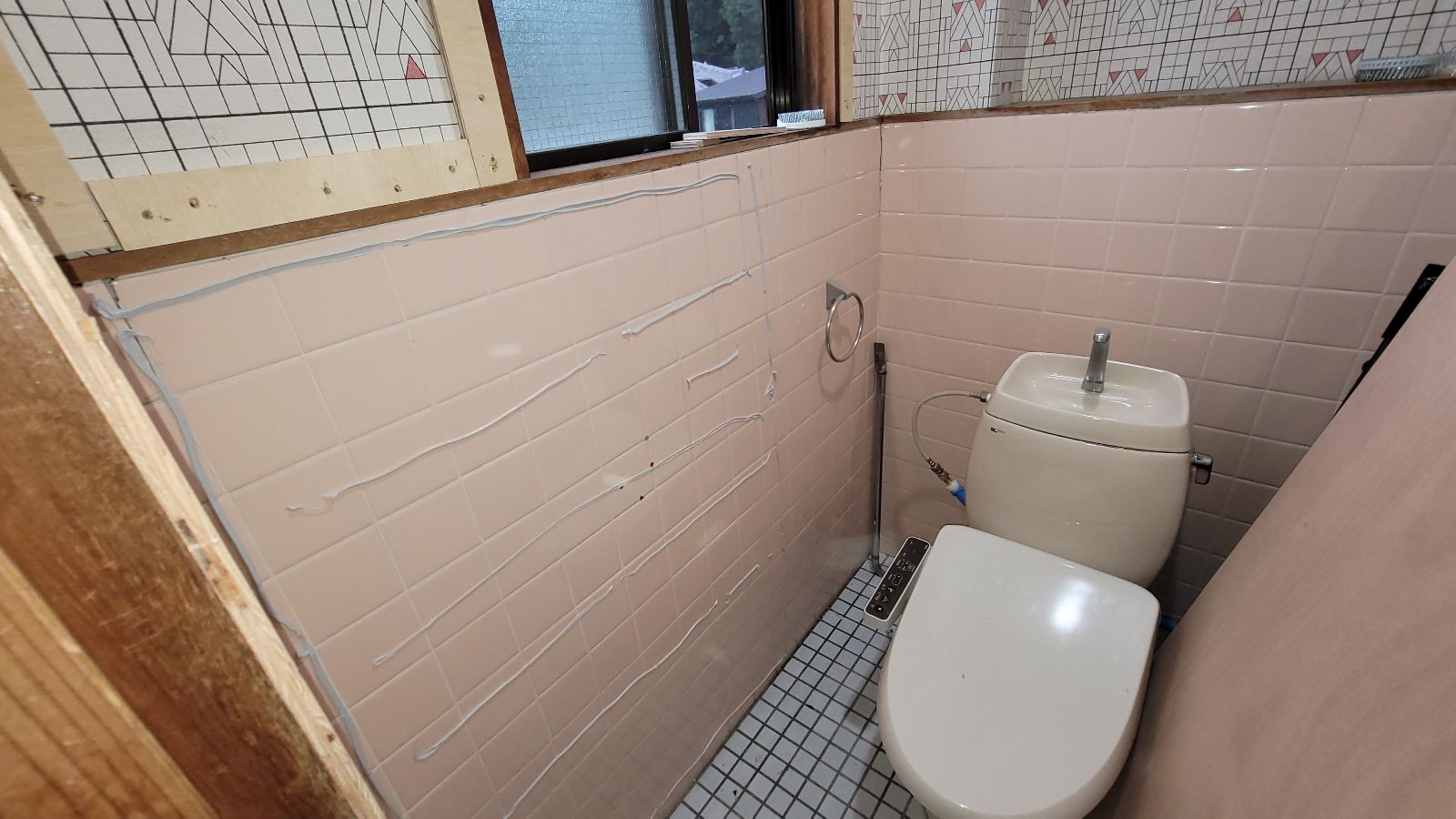 • LIXILのトイレです。床にクッションフロアーを貼りました