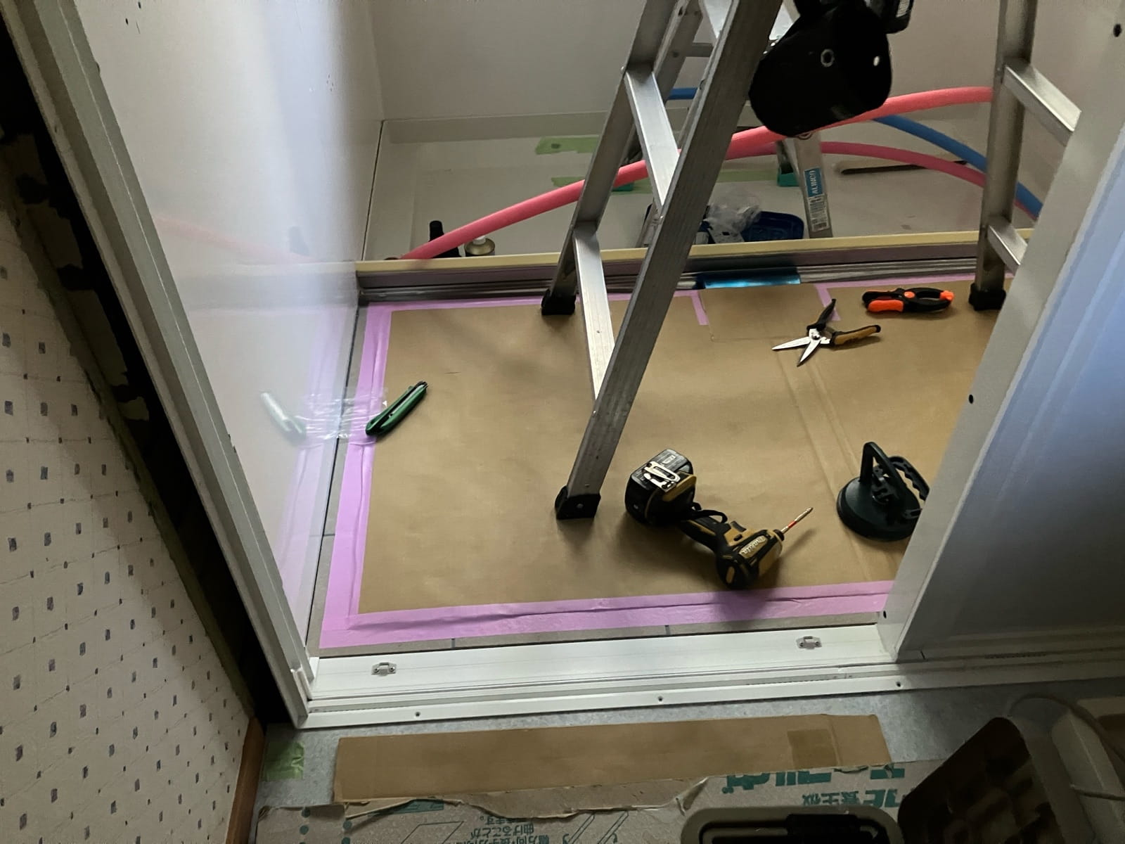 床重ね貼り中
