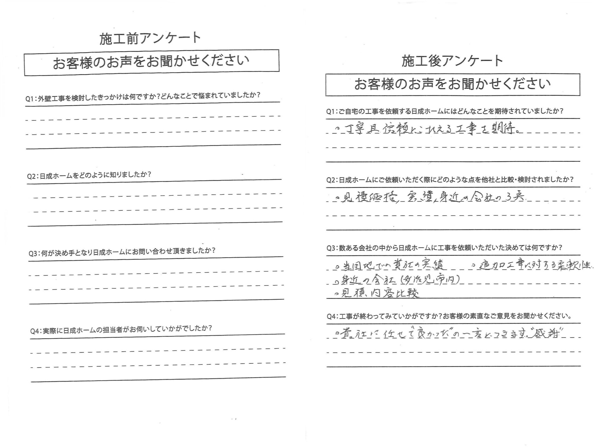 • Q4:実際に日成ホームの担当者がお伺いしていかがでしたか?