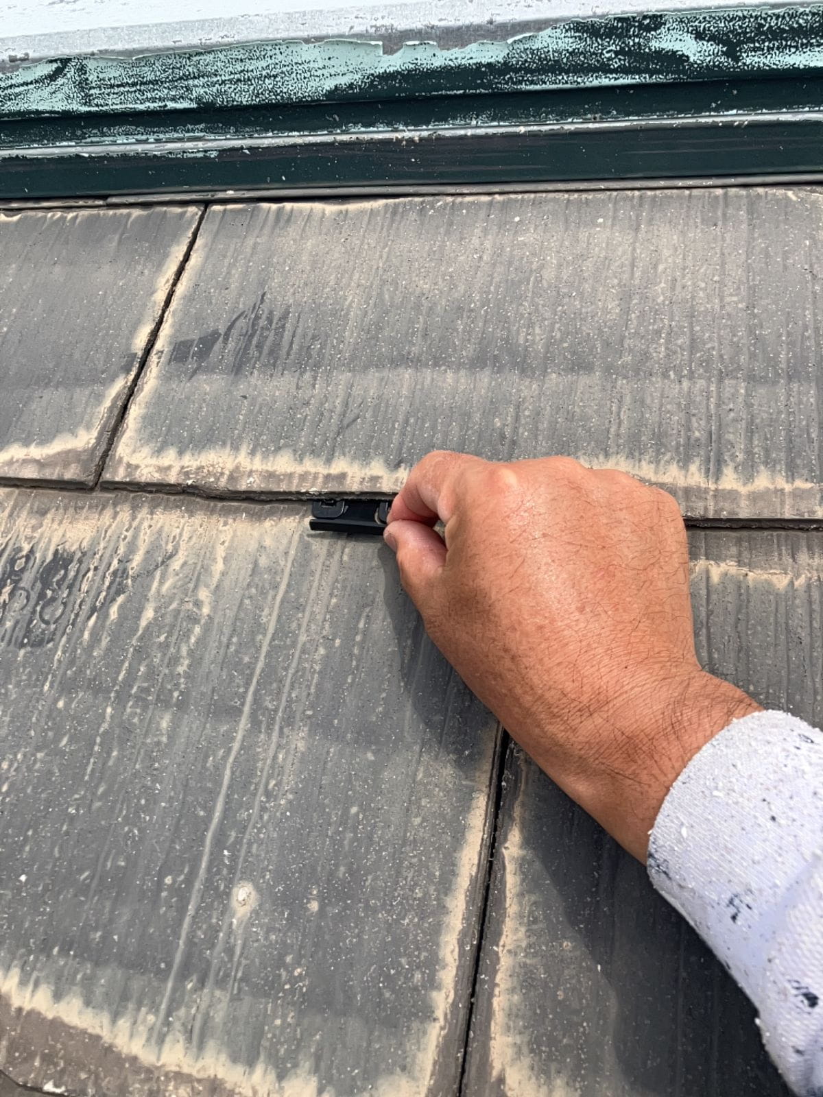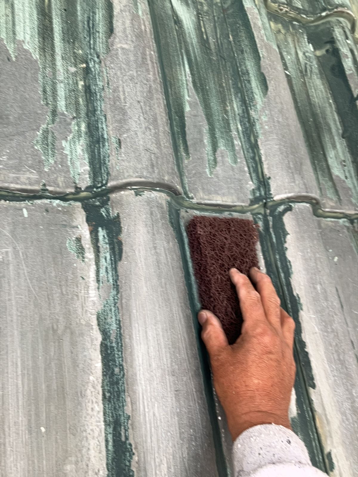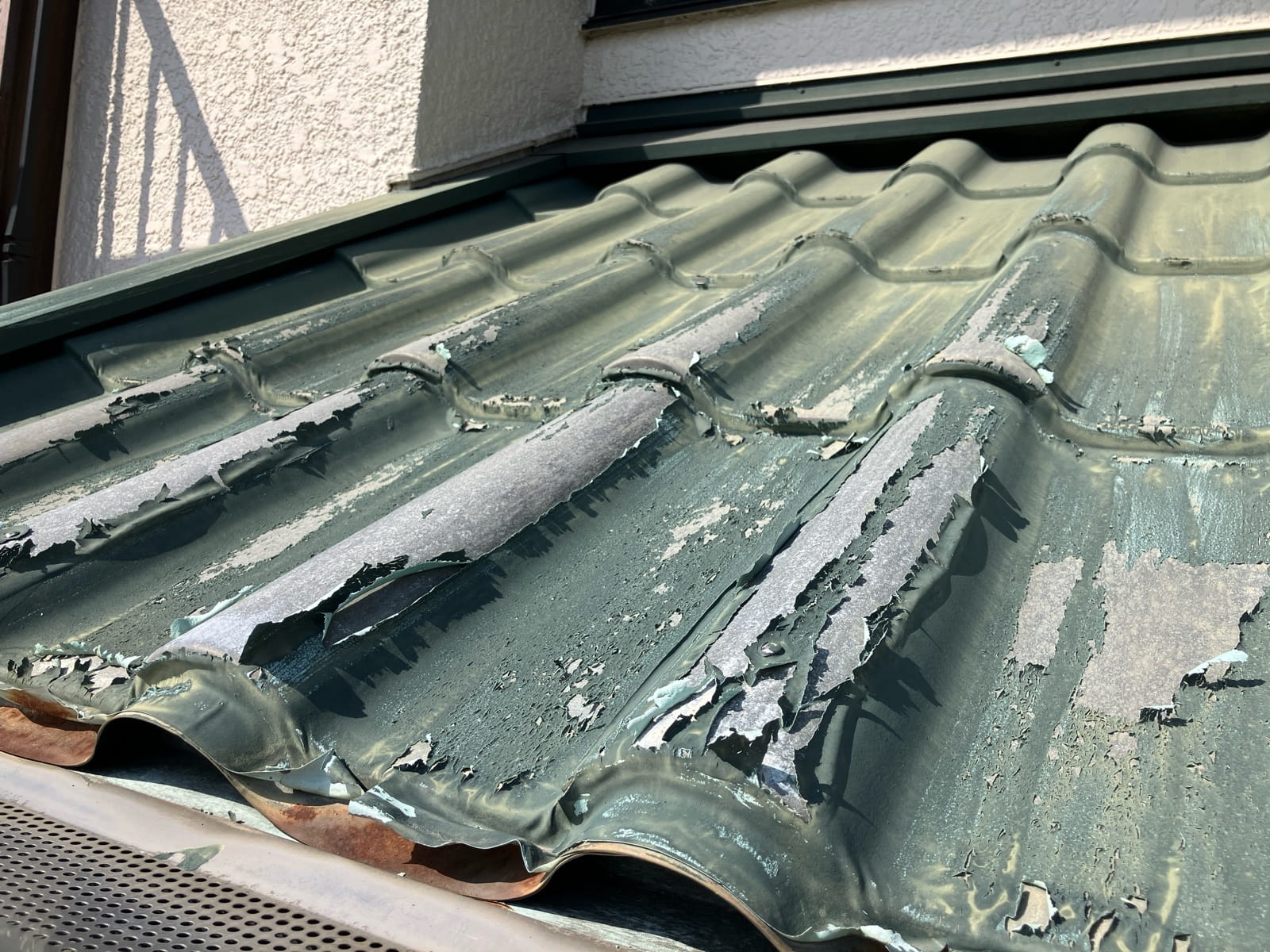 • 玄関上の屋根です。塗膜が剥離しております。