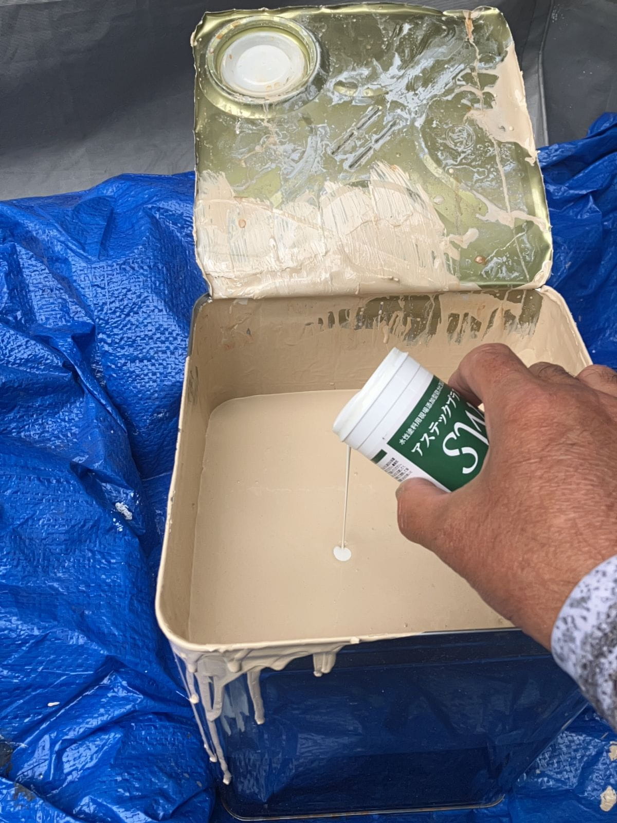 • バイオ液を混ぜて、屋根・外壁の高圧洗浄をおこないます。