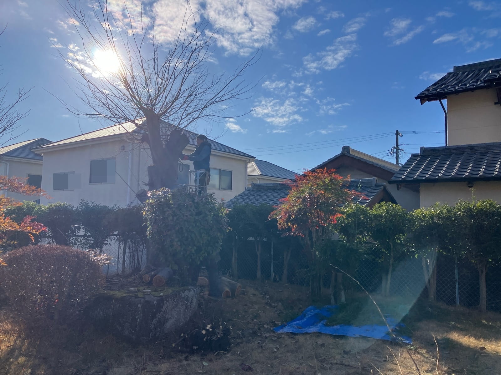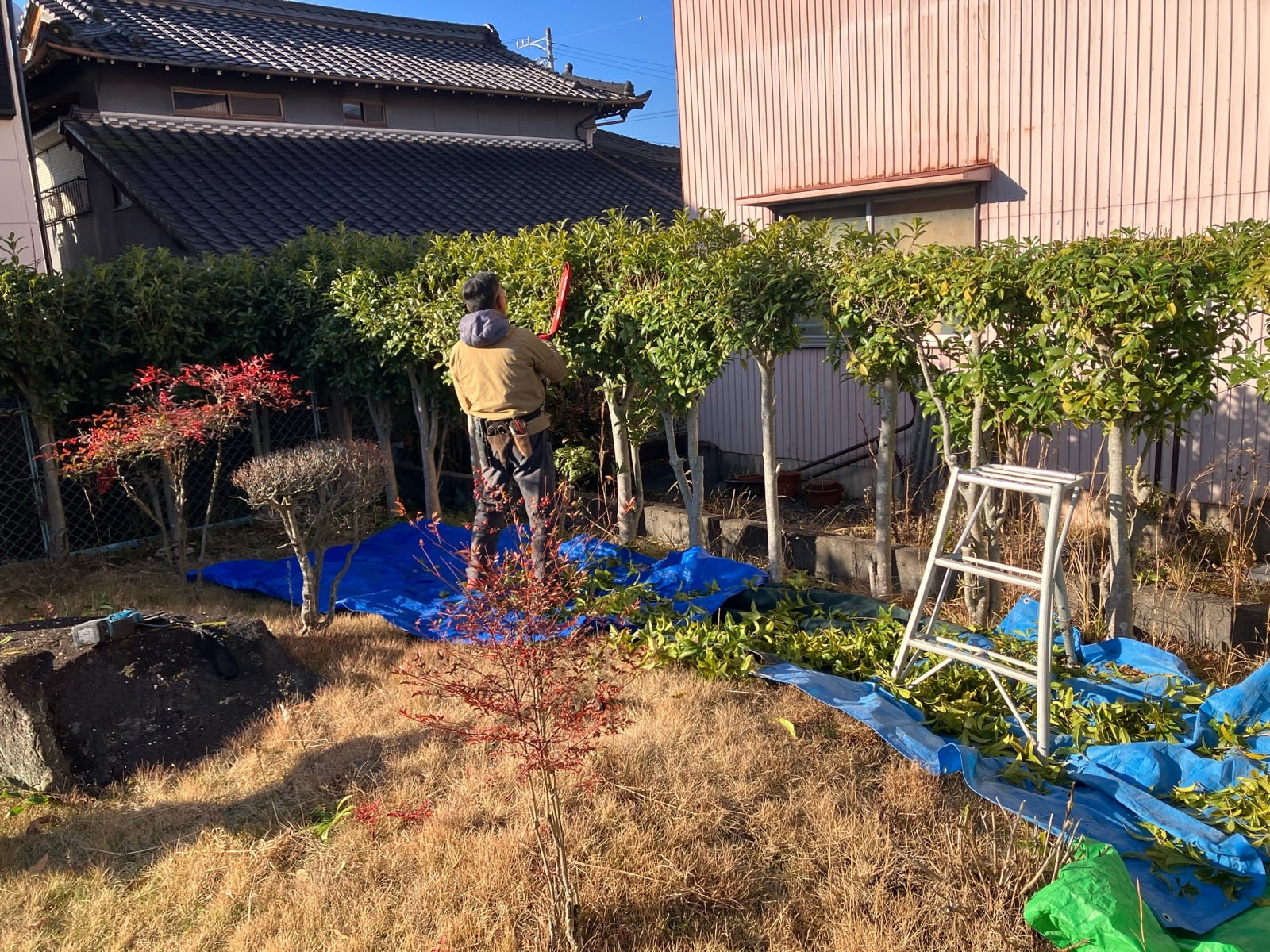多治見市のリピーターのお客様より「手入れが大変になった庭木をなんとかしたい」とご相談をいただき、剪定・伐採作業を行いました。