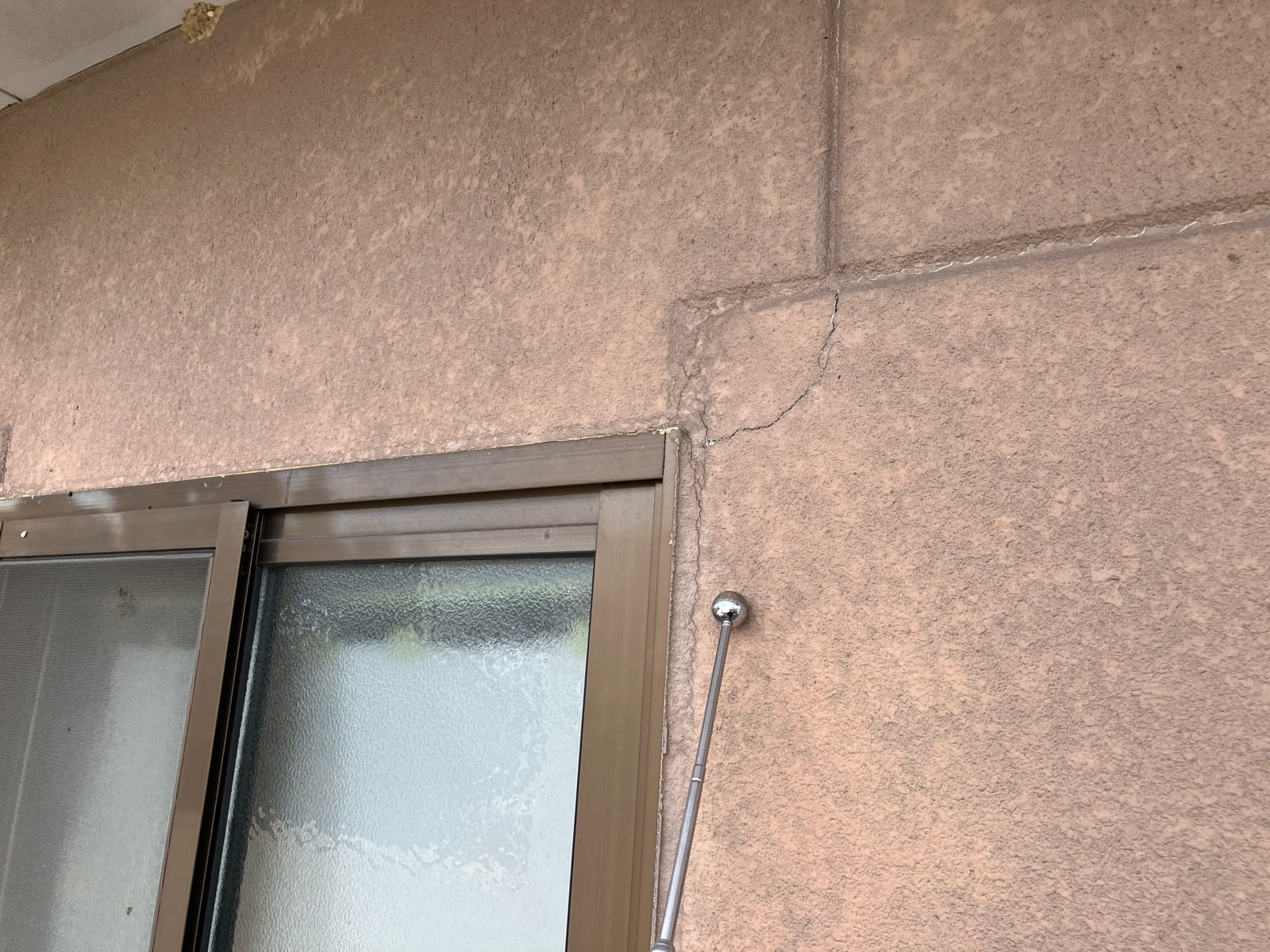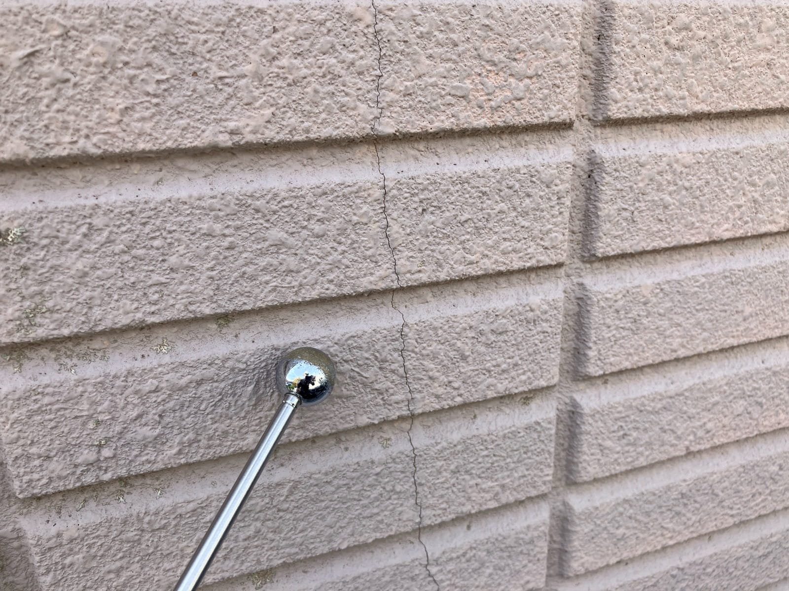 ひび割れが発生しています。塗膜の防水機能が低下し、内部への水分の浸入が懸念されます。