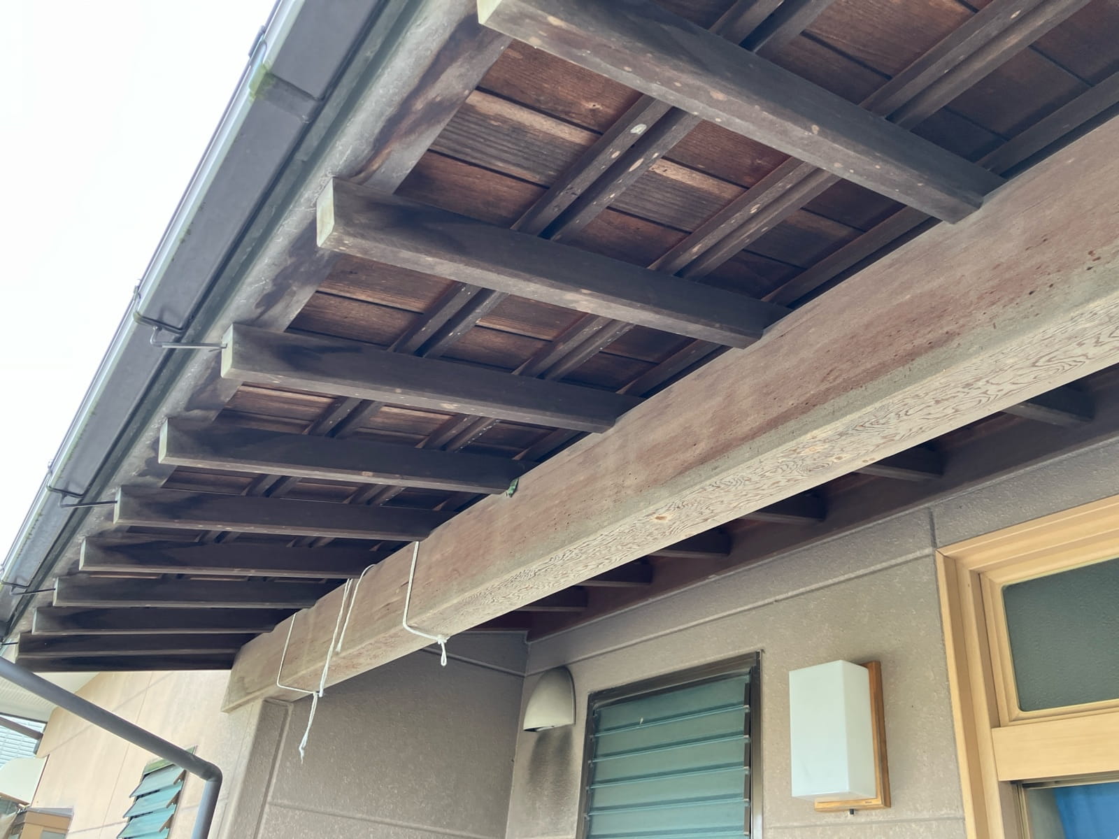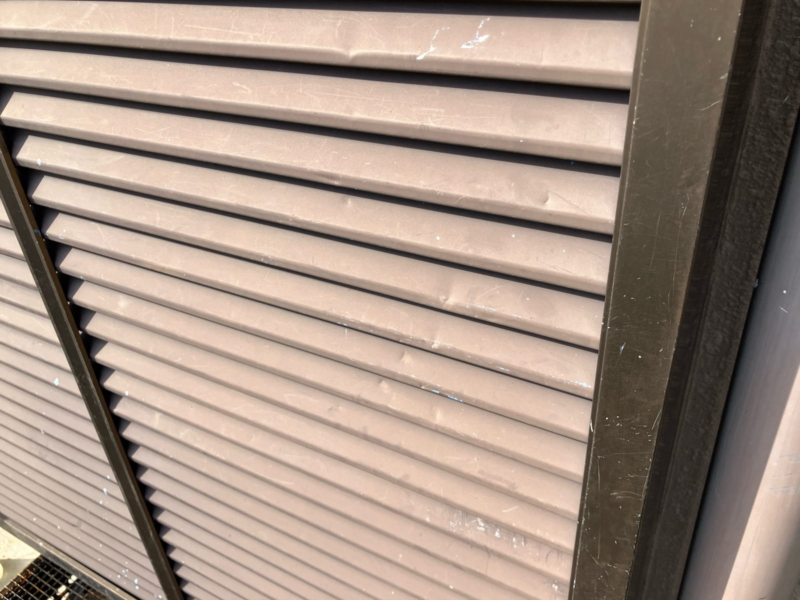 表面塗膜に軽微な剥離が発生しています。剥離箇所から吸水が促進されると建材の耐久性を損なう原因となりますのでメンテナンスが必要です。