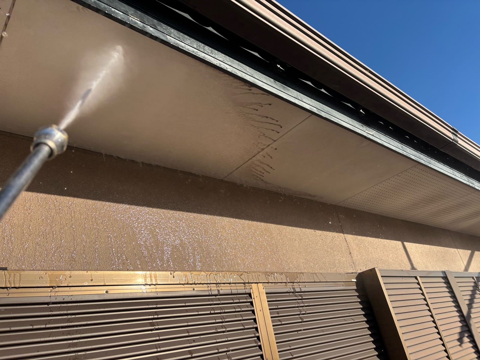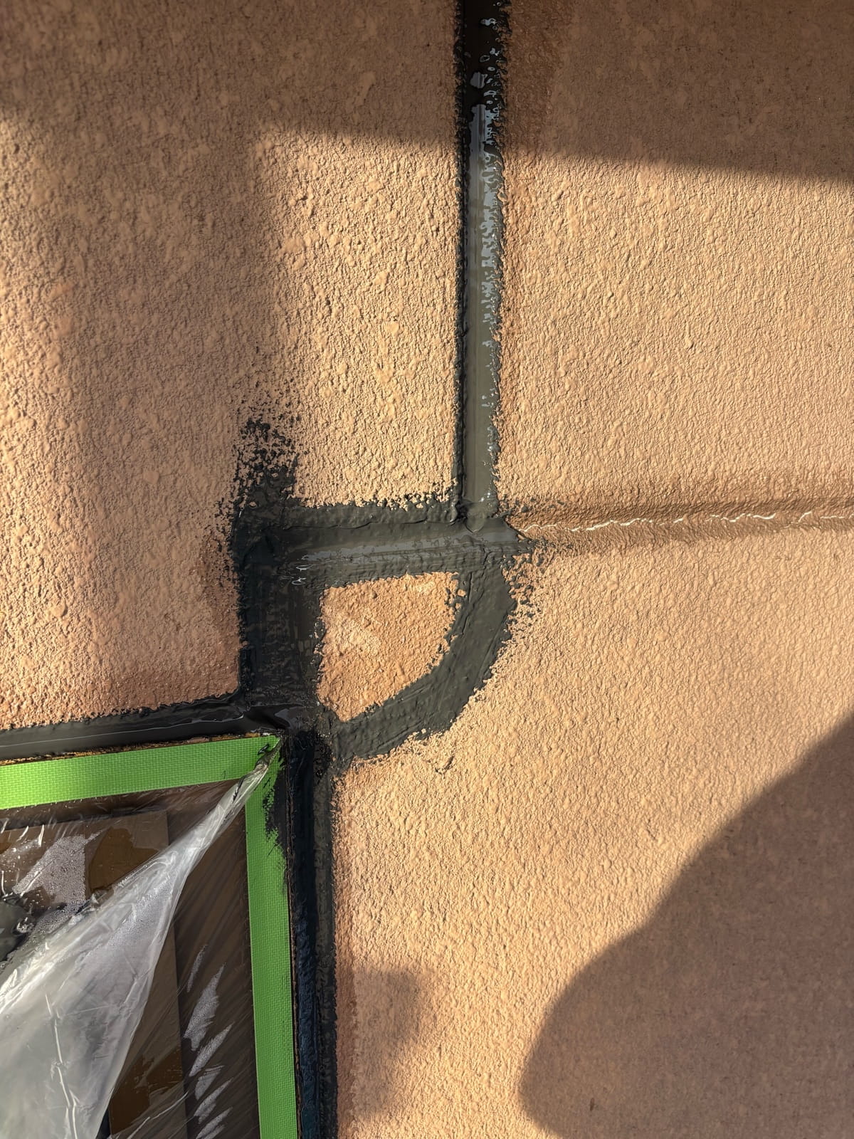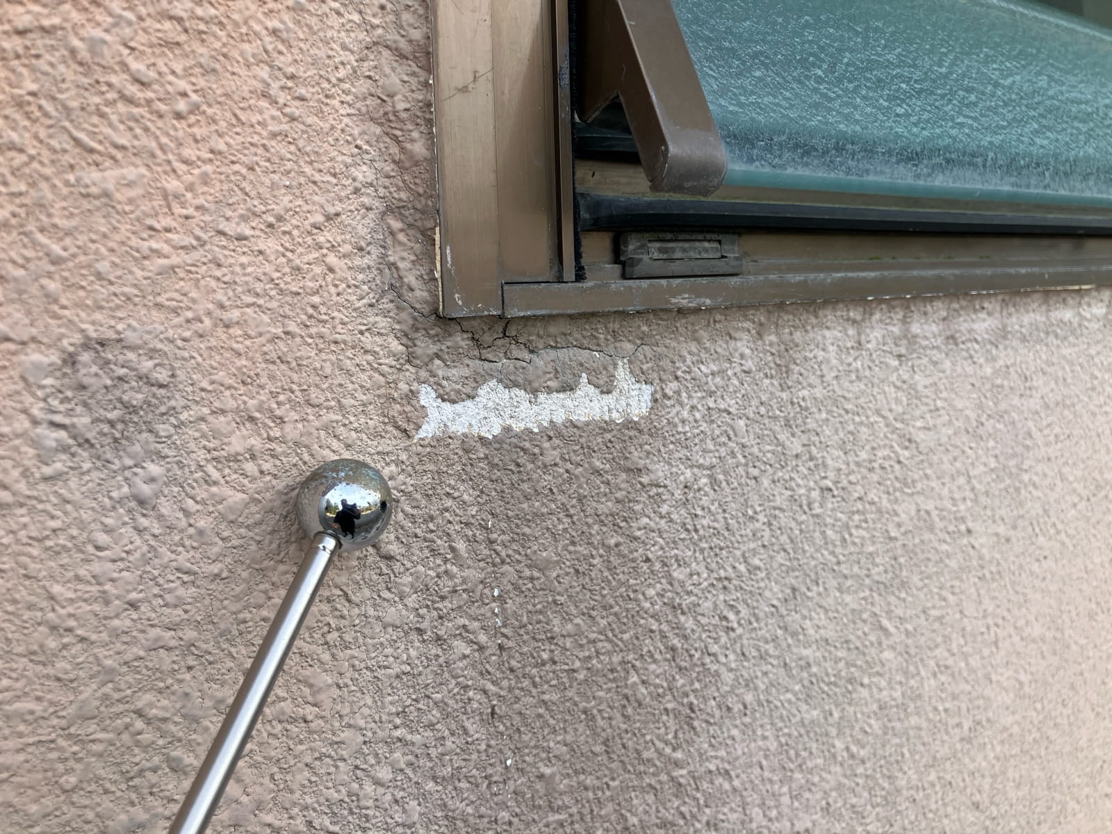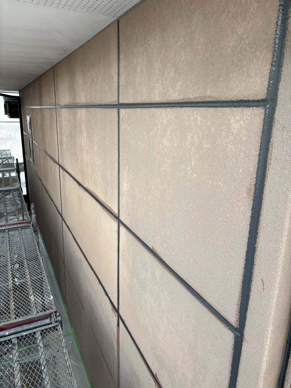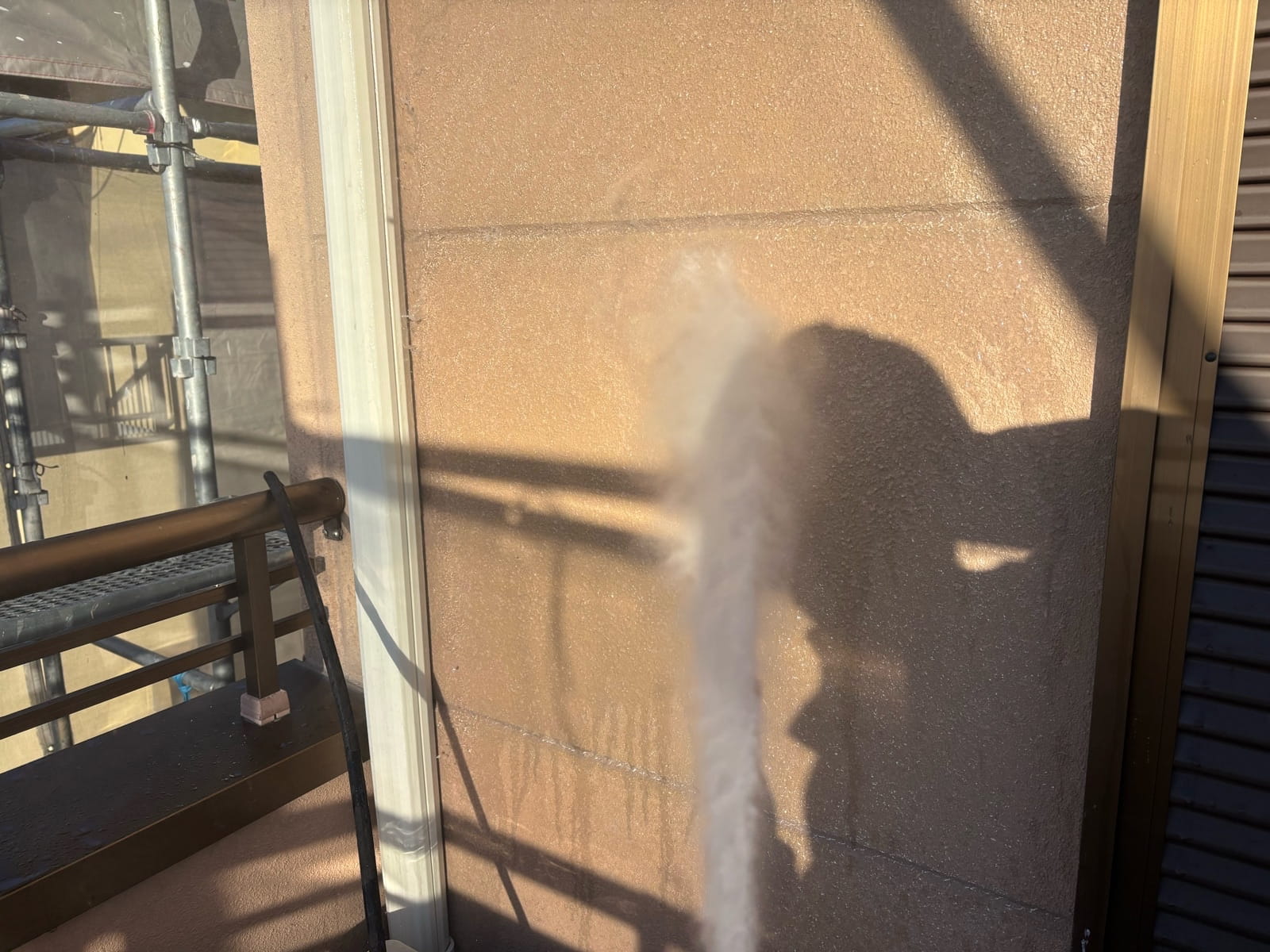 塗膜表面に重度のチョーキング現象が発生している状態です。防水機能が完全に失われている状態なので、早期の塗装メンテナンスが必要です。