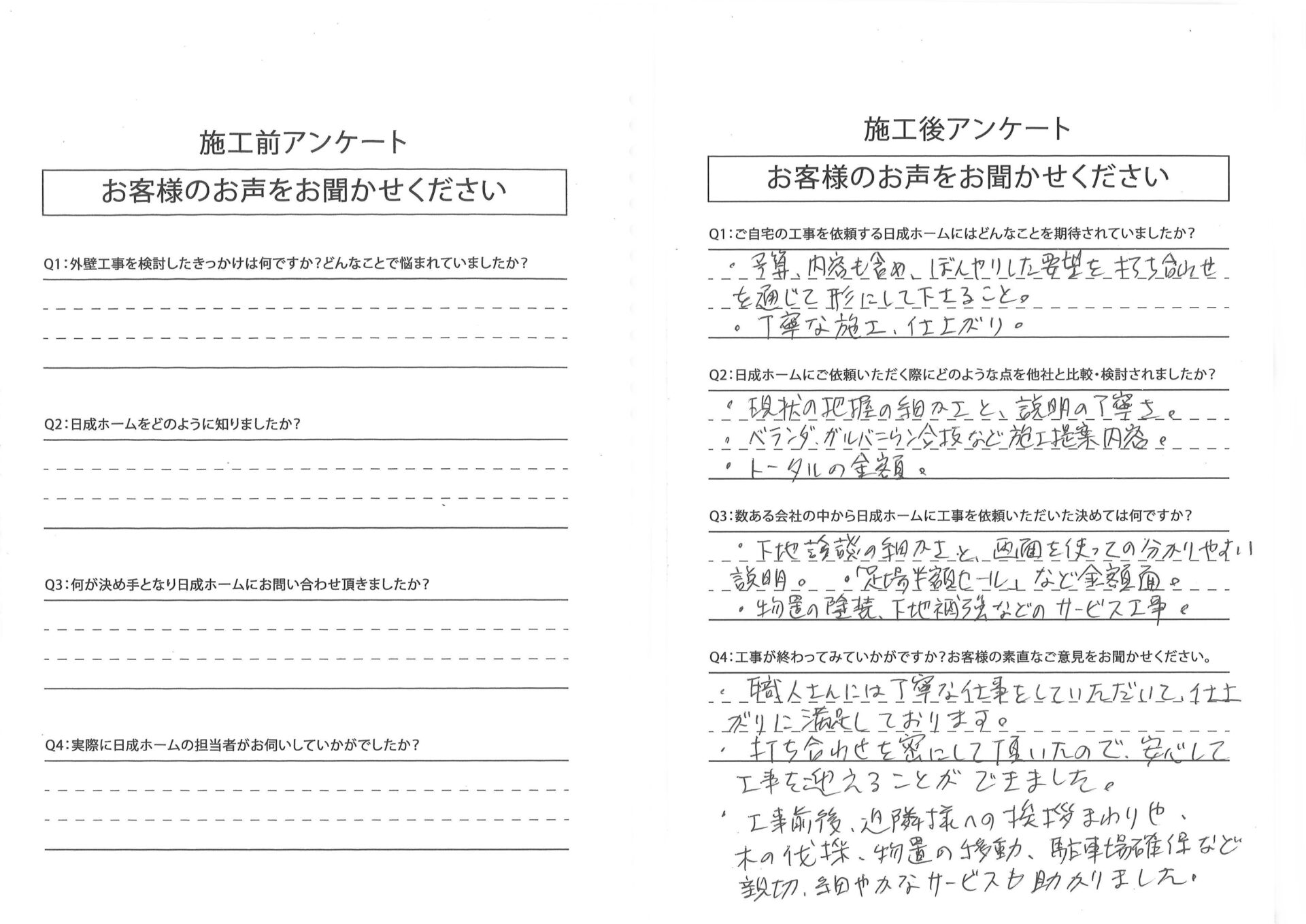 | 施工内容 | 外壁塗装工事、ベランダ壁カバー工事、ベランダ防水工事 |