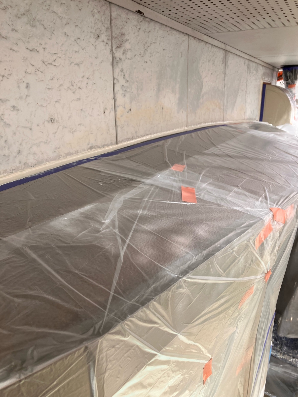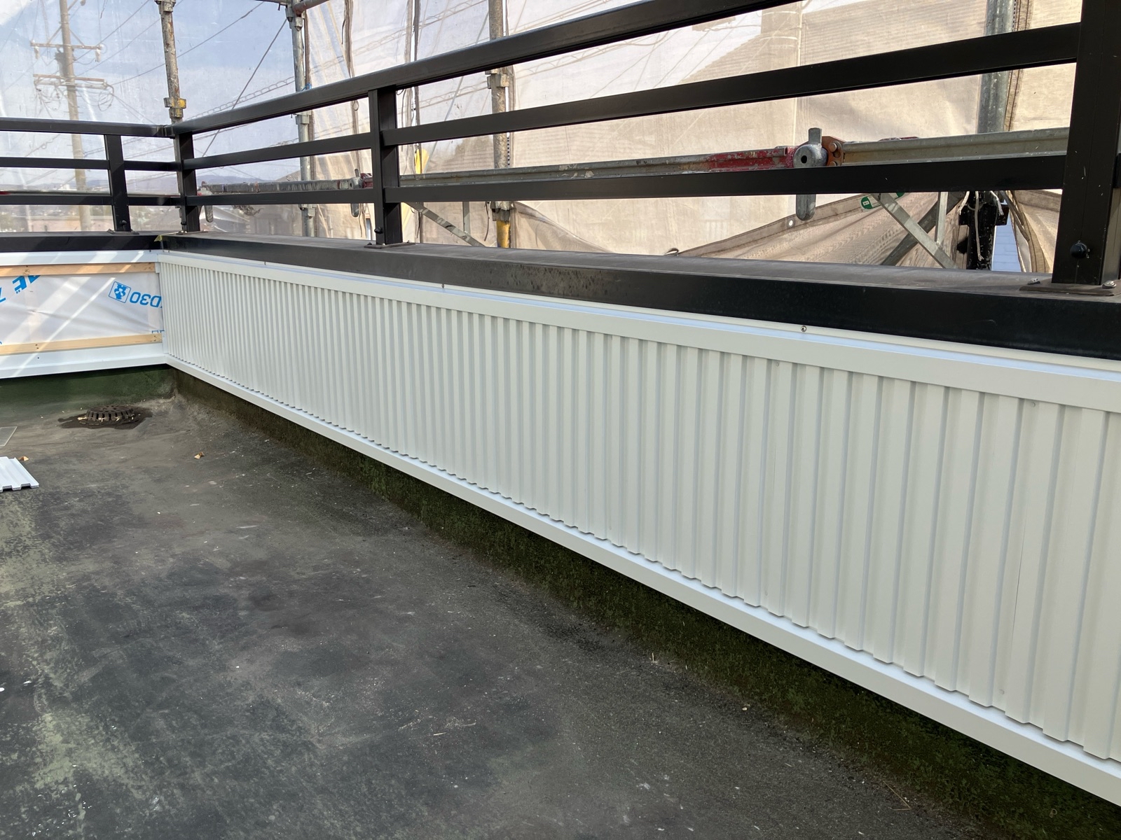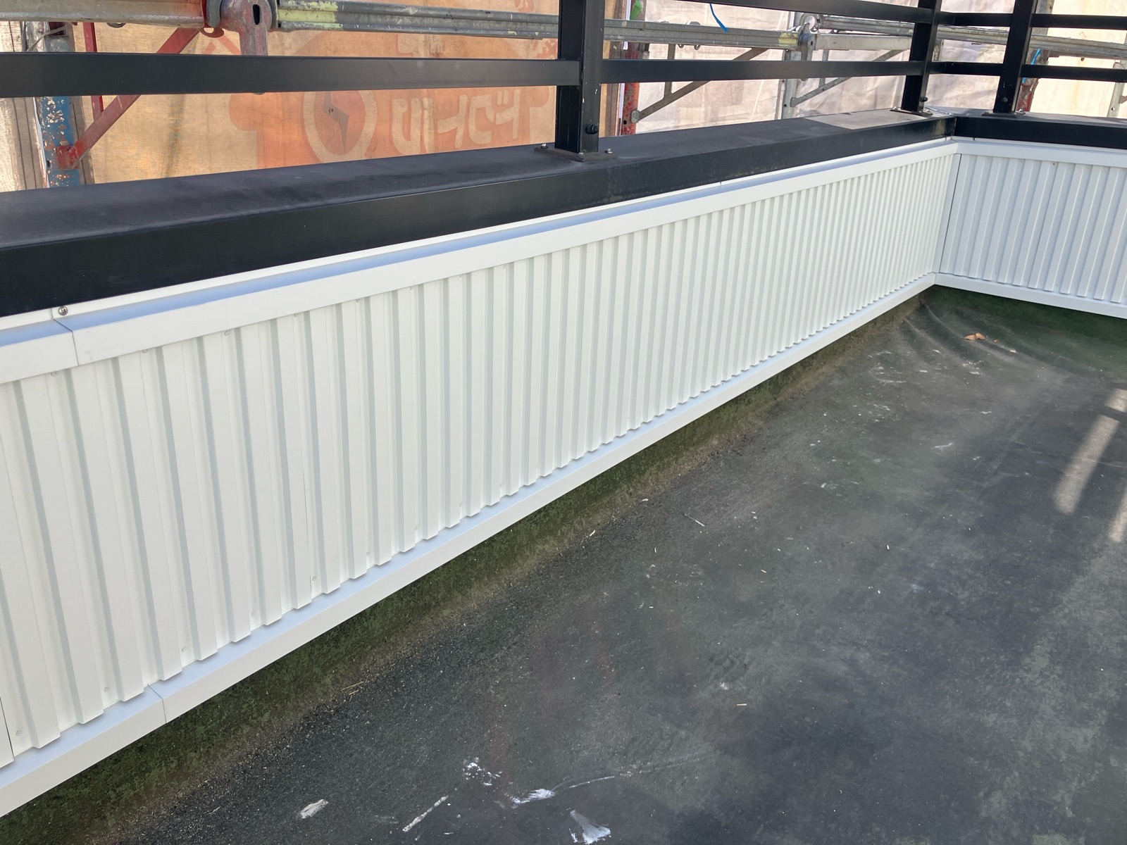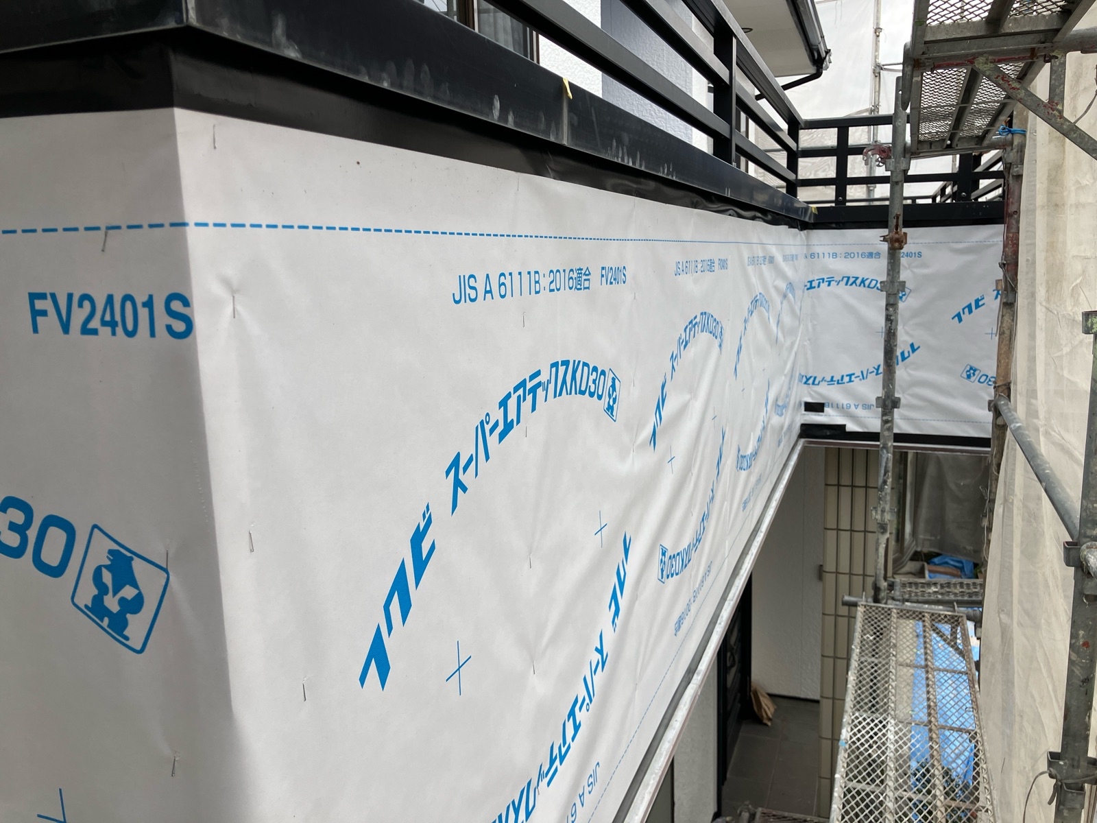 ベランダ部分は雨漏りのリスクが高い箇所であるため、今回は表面の防水塗装(ウレタン防水)だけでなく、壁面にカバー工法を施すことで防水性能を根本から強化しています。