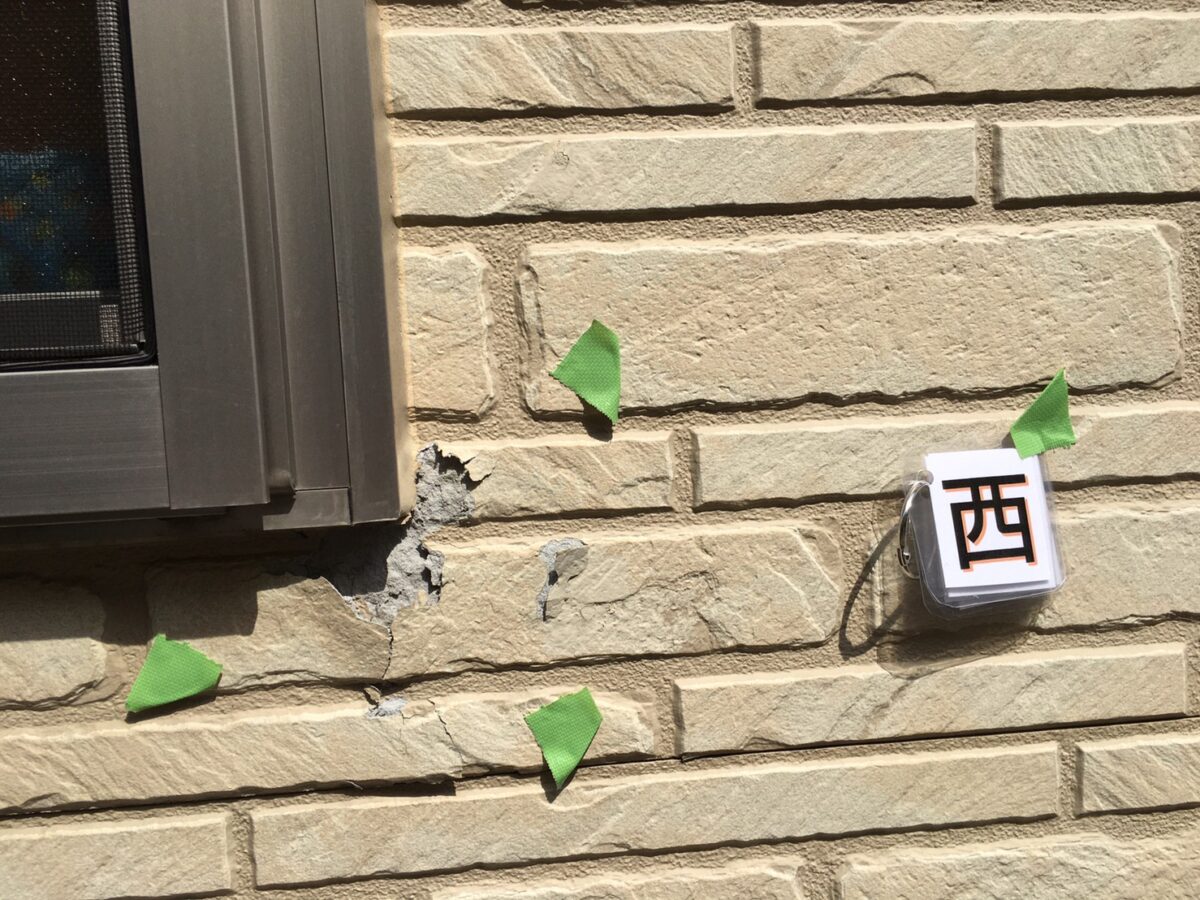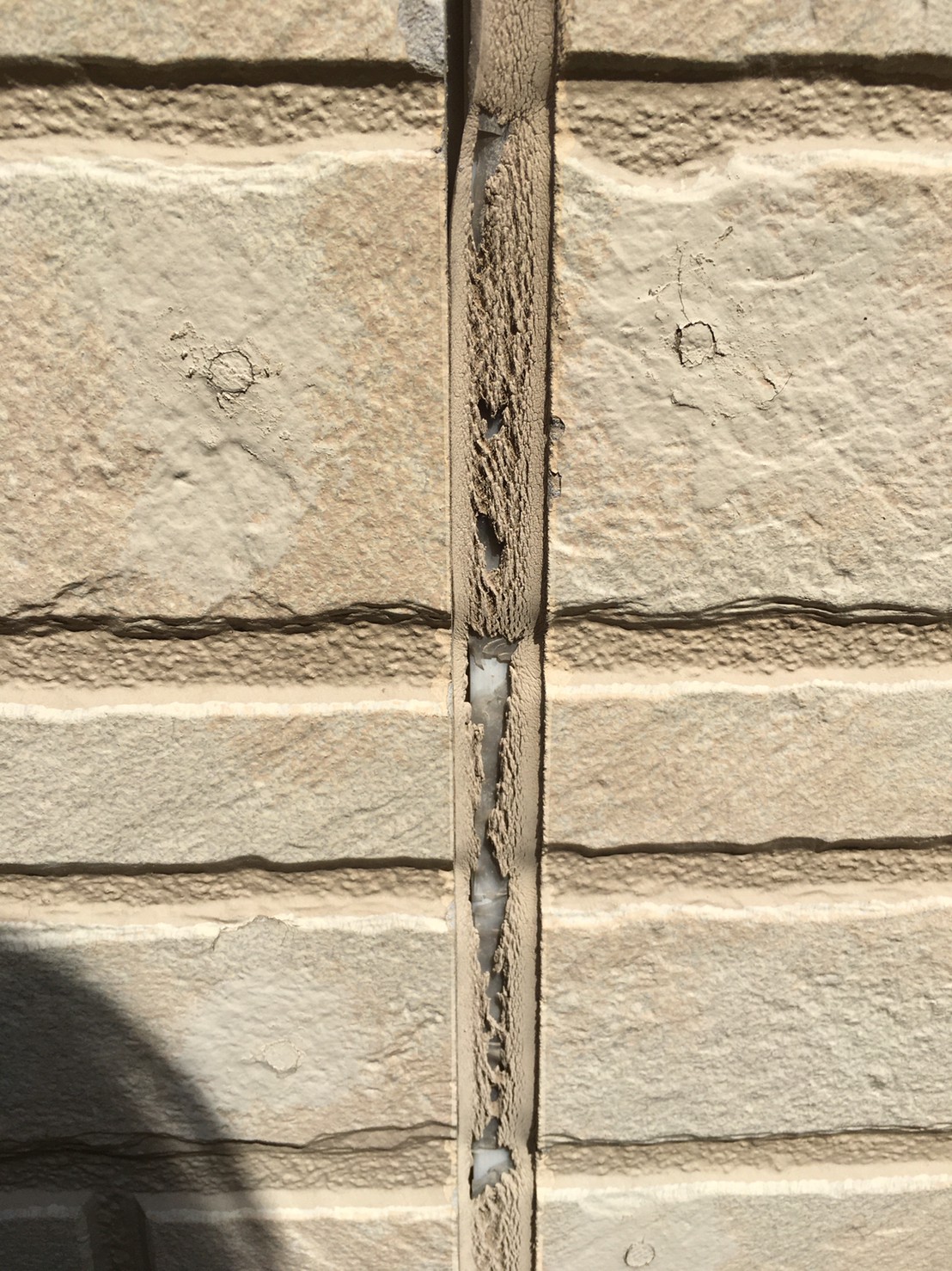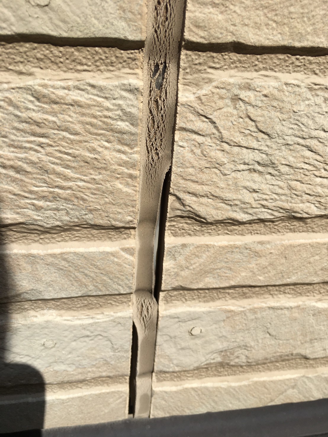 築15年経ちます。初めての塗装で相見積もりがあるとの事でした。しっかりと劣化診断をさせていただきます。お家のった獲物の目地シーリングが、紫外線の影響により、シーリング材自体がやせてしまってひび割れが起きています。子のひび割れから、雨水が浸入してしまい、漏水になることがあります。早めの対応が必要です。