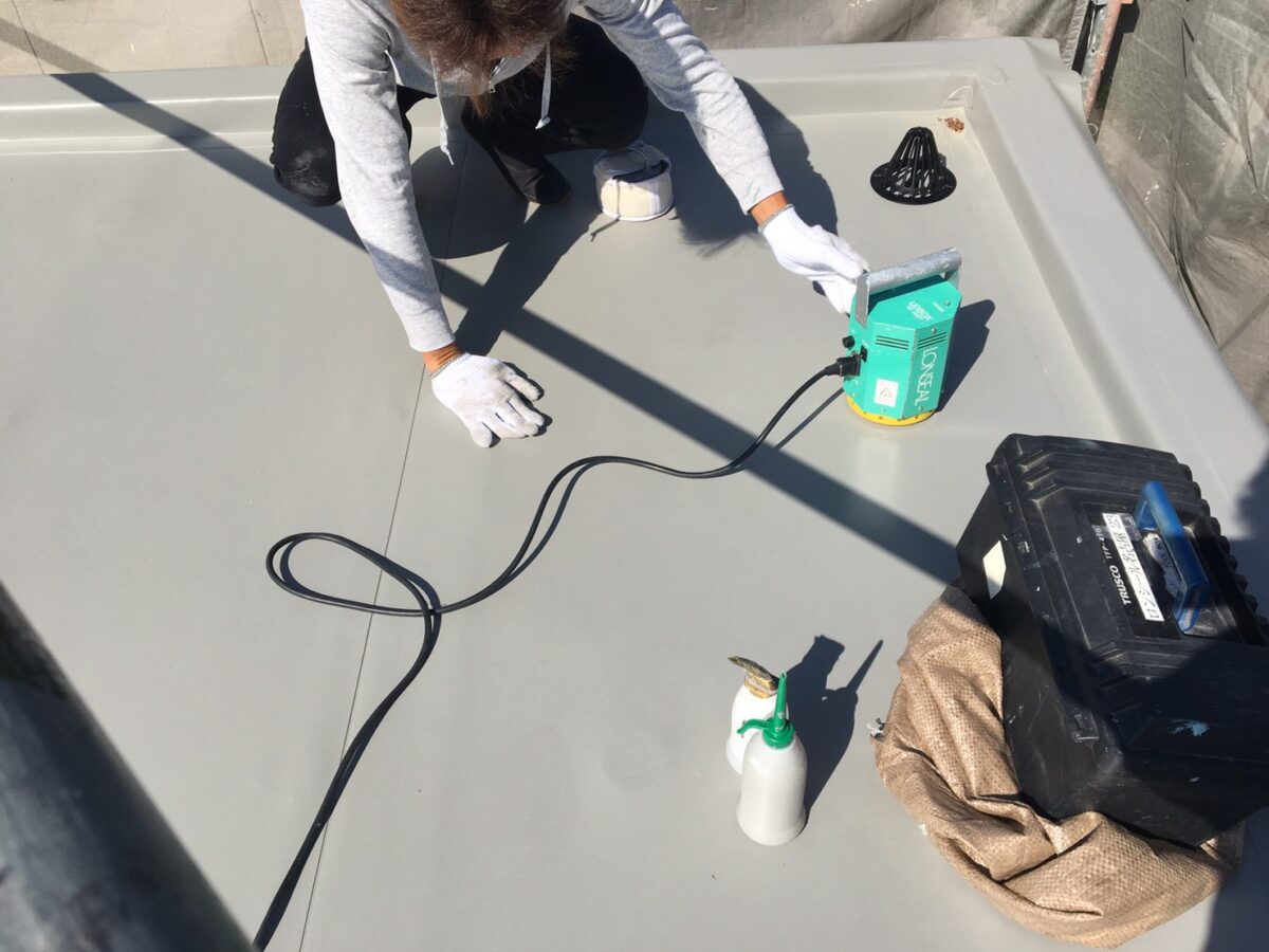 塩ビ防水の絶縁工法という施工方法にて防水加工していきます!