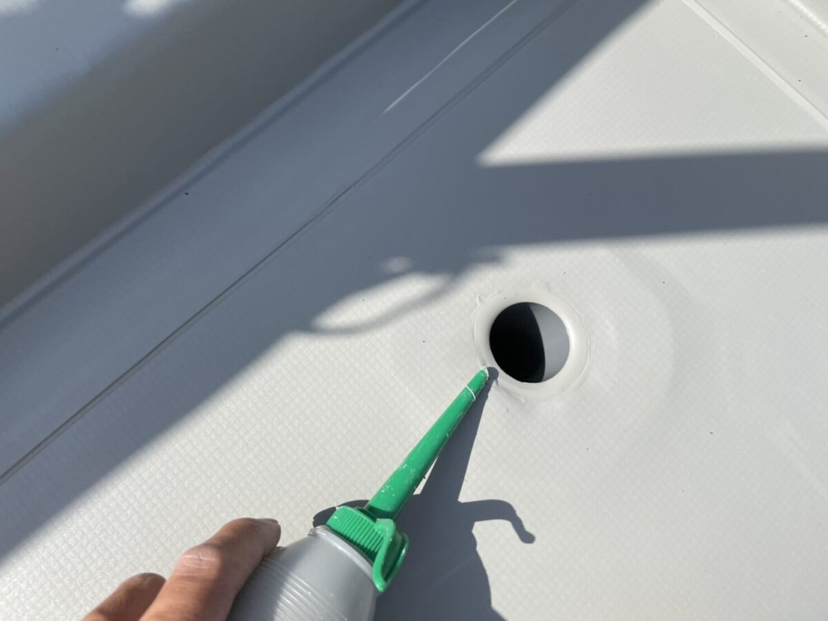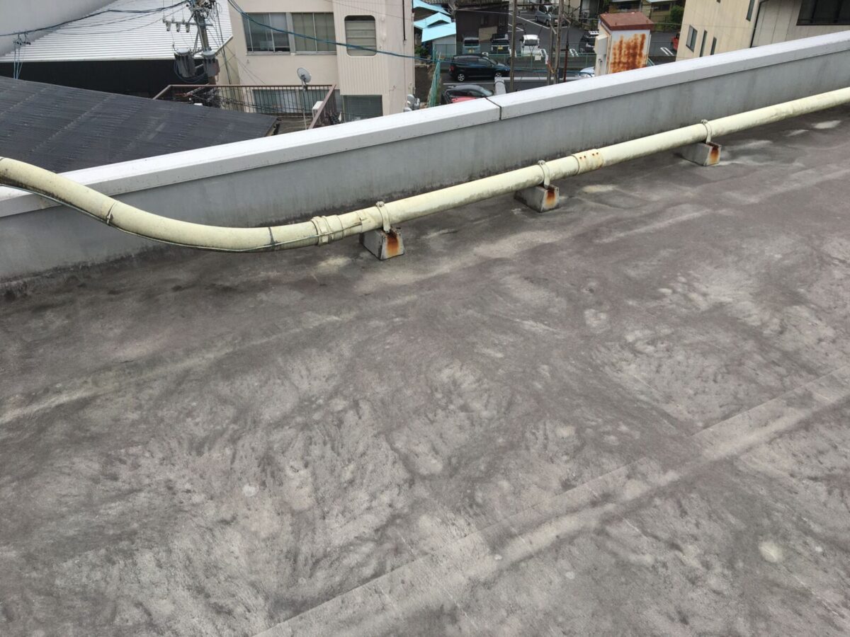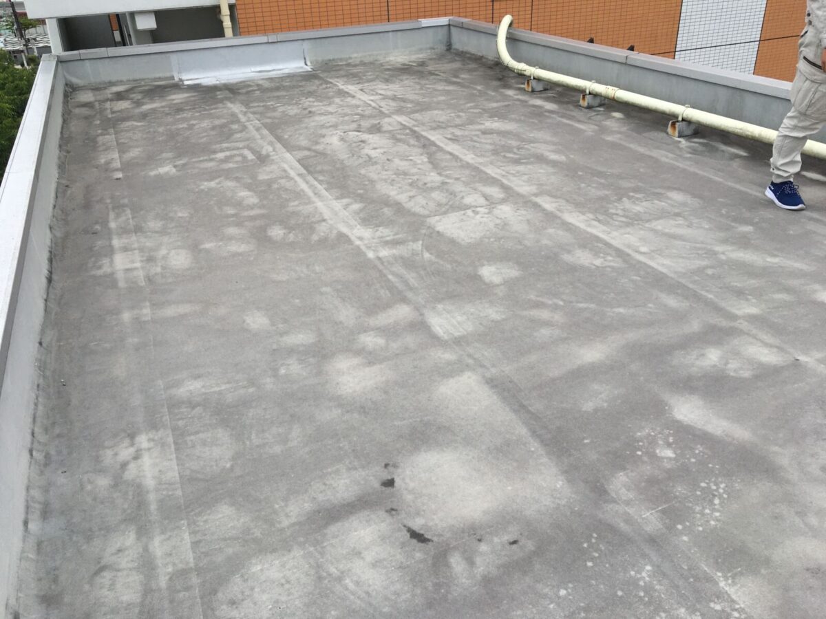 この最後に水が流れていくところをドレンといいます。屋上本体とドレンのつなぎ目部分が割れたり、ひびが入ったりするとかなりの確率で雨漏りに繋がってしまいます”(-“”-)”コンクリートと鉄ドレンなど素材が違う物をつないでいる部分はコーキングやボンドで止めていることが多く経年劣化で隙間ができてきたりあします。平場の防水がよくてもこういった小さなところから水が入り込むケースも多くあります。