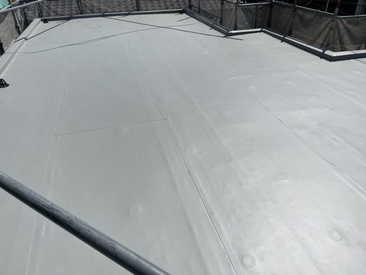 こちらは先日、土岐市で仕上がりました、屋上の塩ビシートの絶縁工法という防水工事です!いわば防水のカバー工法です!既設の防水シートなどをめくらずに新しい防水シートを上からかぶせていきます。こちらも工事中の雨、廃材の処分費を抑えることもできます!