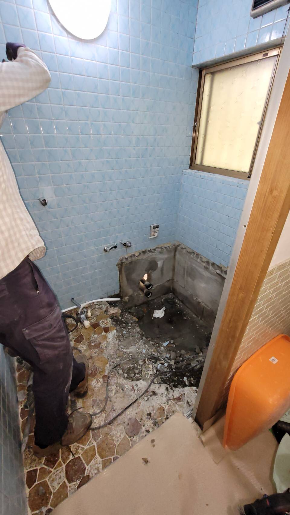 これにてユニットバスの組み立て前の解体が終わりました。