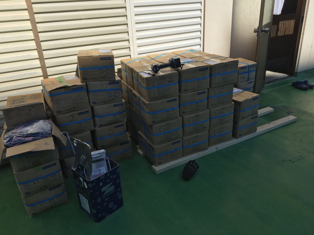 ドーーンと朝からみんなで40箱ぐらい荷揚げをしました!若い子を階段役にして頑張ってもらいました!(笑)