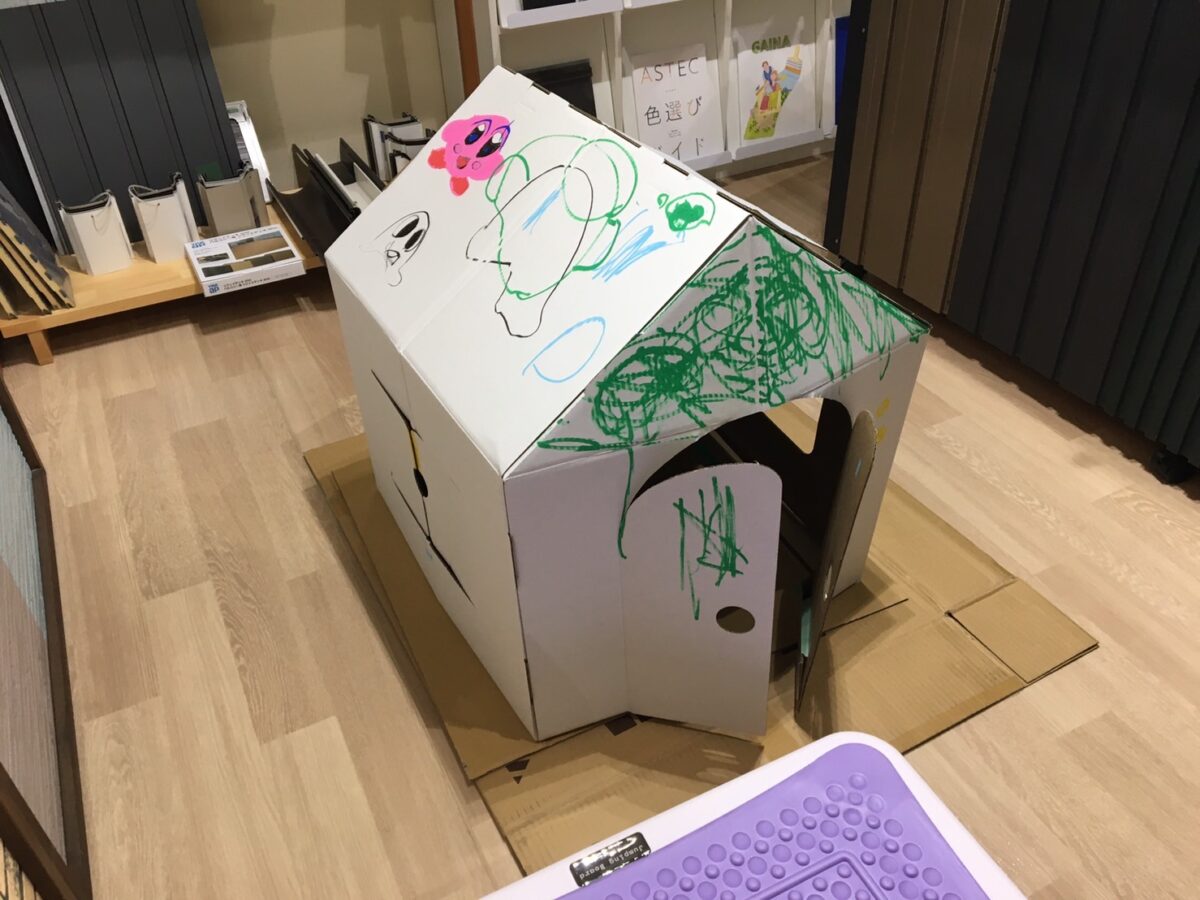 ちびっこ画伯も色塗りをしてくれました☆わんこのお家になるかなぁ!(^^)!(笑)