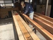 - 寸法を出し墨を付けて溝を掘ったり、カットしたりしていきます。 これを組む所が好きなんです(#^^#) これ入るのか?と思うところに見事にはまって釘など無くても合致して組建っていくところはまさに職人技といったところです!