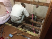 - 脱衣場では水道屋さんが配管をやり直しております。 サッシ交換が終わるとこちらの床の組直しをしていきます!