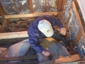 - 非常に足場が悪くやりにくいですが新しい床の土台をくんでいきます。 これが出来れば歩けますので頑張っております! またご紹介します!