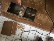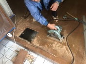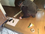 - 下地を入れ直し床を補強して、部分的に重ね貼りをして直していきます。