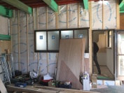 外壁部分にサイディングボードを張りました。