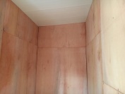 - またひっくりかえってしまった(~_~;) 壁にも断熱付きのパネルを張りました。 ユニットバスみたいに綺麗になりました。