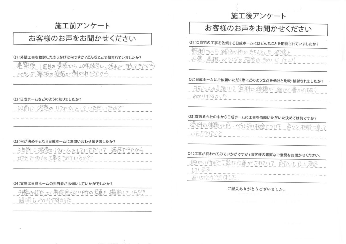 お客様には、工事前と、工事後にアンケートの