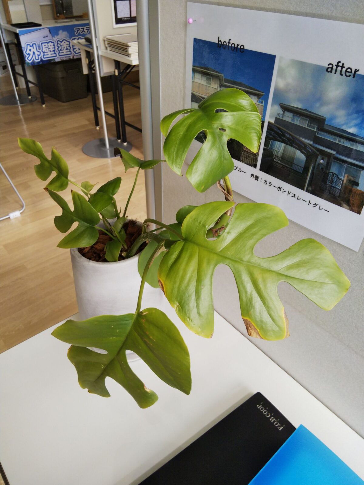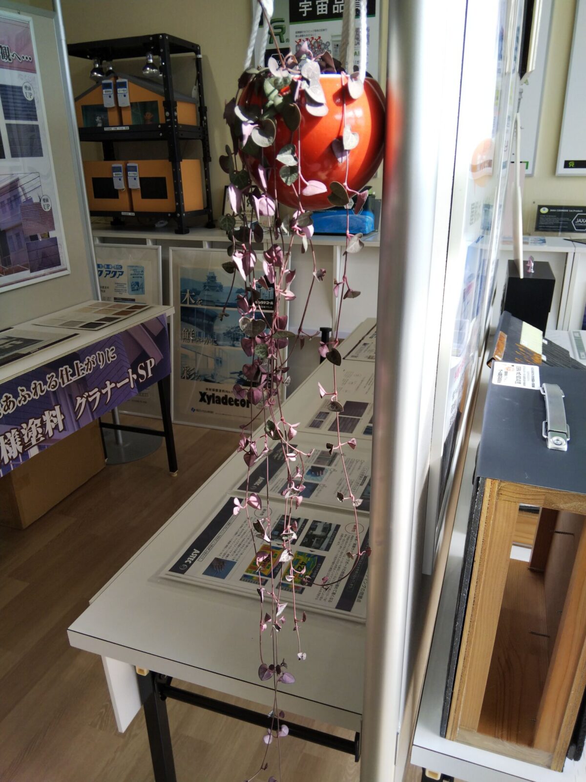 商談コーナーの手前、棚の上には