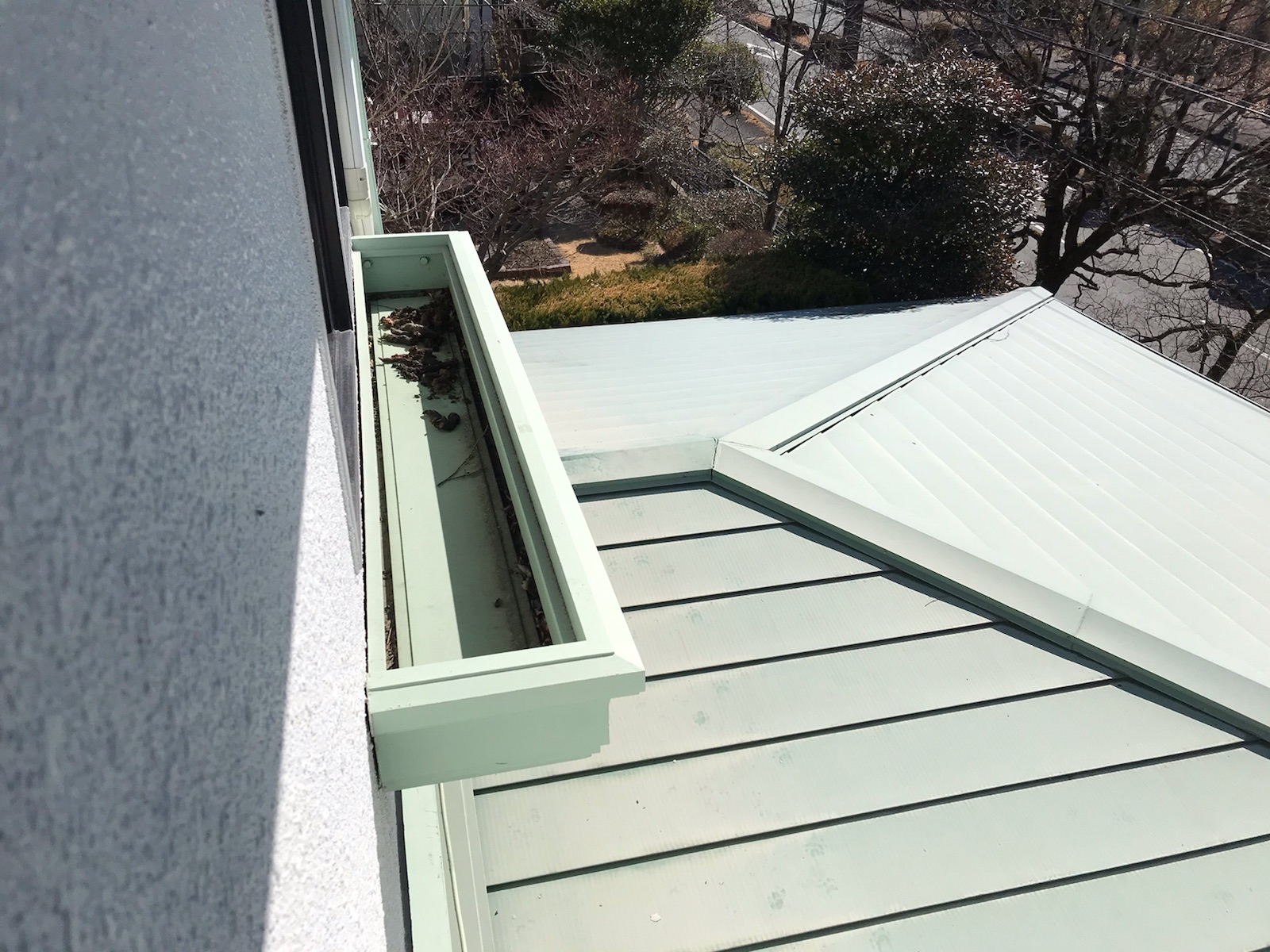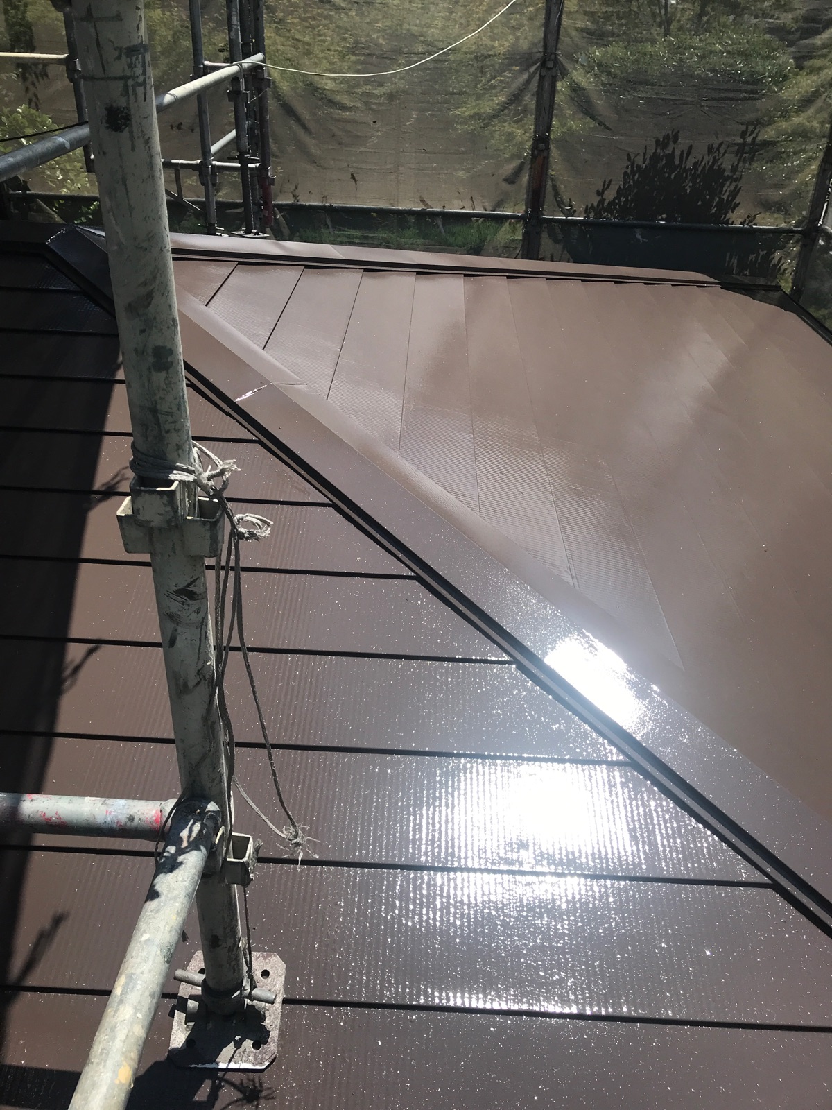 工事を行っている現場で、下屋根の塗り替え塗装を